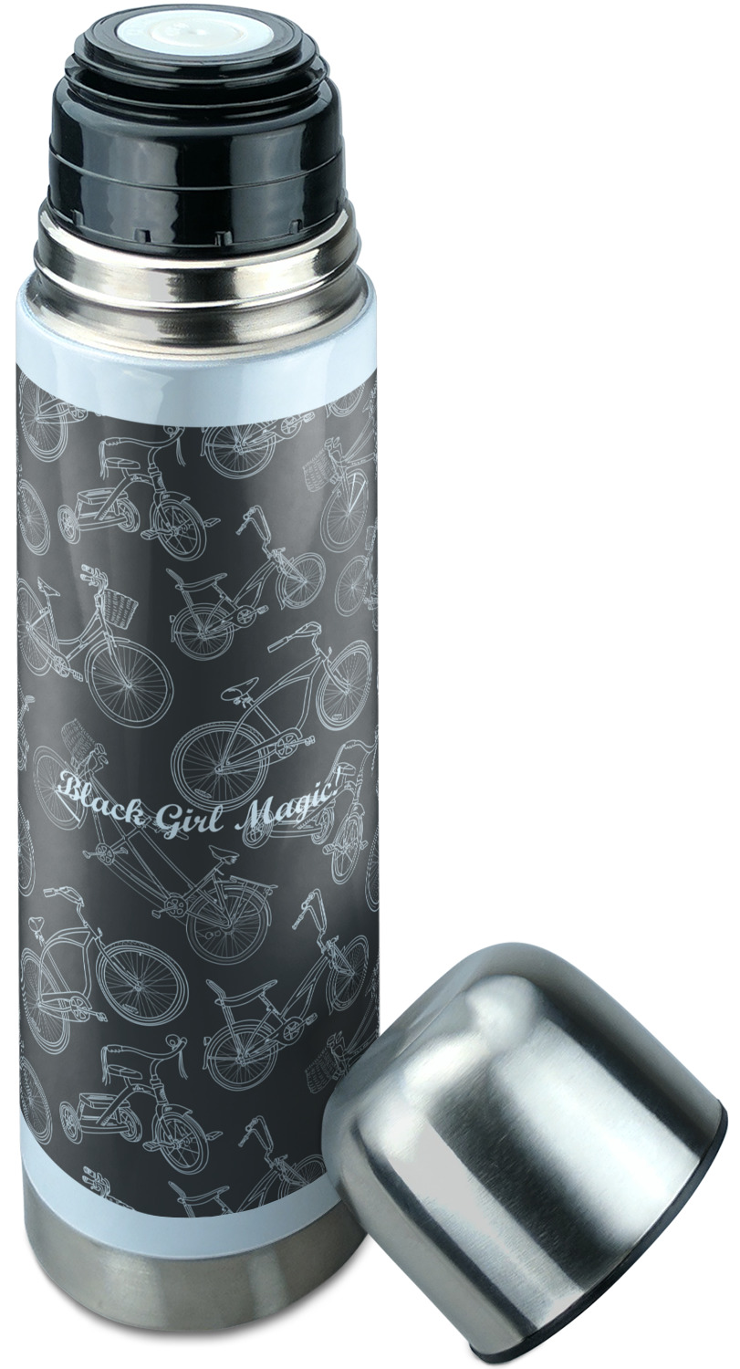 Manufactured from stainless steel, this thermos is built durably and double-walled insulated to preserve the temperature of your drink for hours. It also features a screw off lid that is made to also function as a small cup. Upon unscrewing this part of the thermos bottle, a pop-open, pour feature emerges. This feature allows you to slowly pour your beverage into your lid, ensuring a steady, controlled pour into your lid or other cup. With a capacity of 25 ounces, these large thermoses can hold several servings of your favorite beverage. Your customization is displayed all around the bottle with bright, vibrant color.