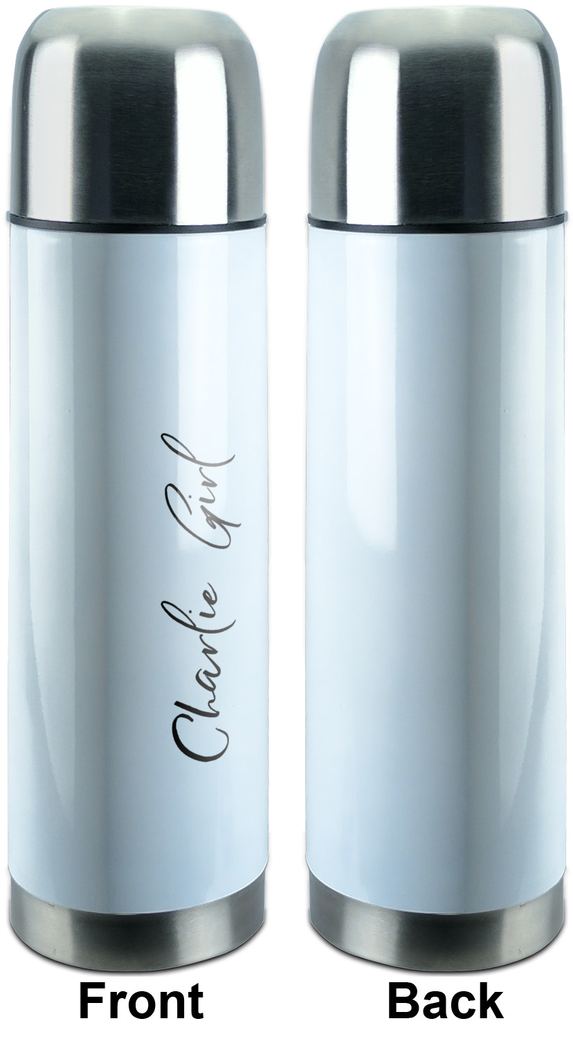 Transport your iced and heated drinks in style with our stainless steel thermos! This effective, custom thermos insulates your beverages for hours, while displaying a creative, personalized design completely of your choice!