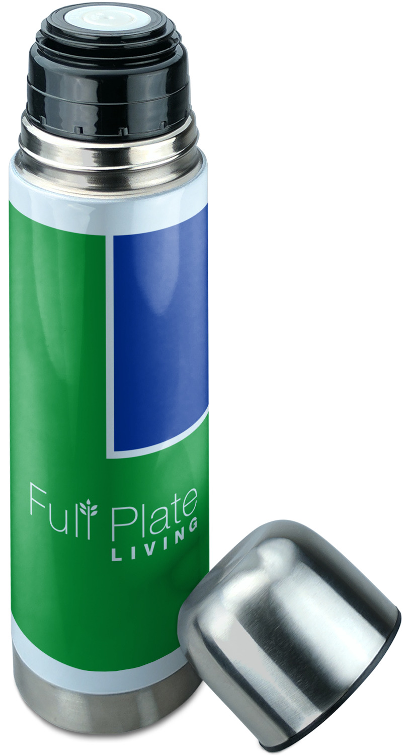 Manufactured from stainless steel, this thermos is built durably and double-walled insulated to preserve the temperature of your drink for hours. It also features a screw off lid that is made to also function as a small cup. Upon unscrewing this part of the thermos bottle, a pop-open, pour feature emerges. This feature allows you to slowly pour your beverage into your lid, ensuring a steady, controlled pour into your lid or other cup. With a capacity of 25 ounces, these large thermoses can hold several servings of your favorite beverage. Your customization is displayed all around the bottle with bright, vibrant color.