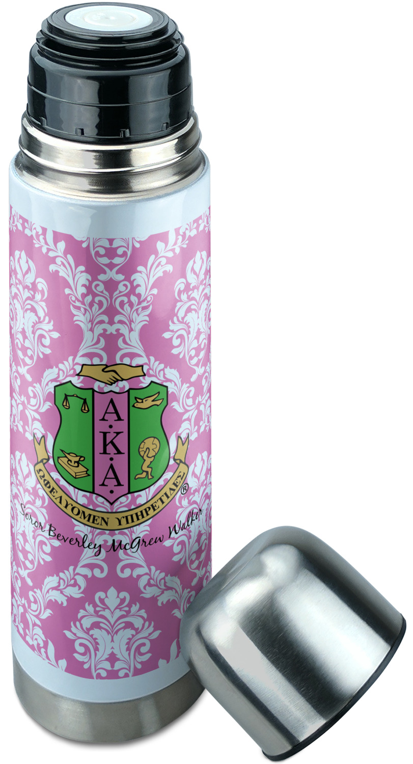Manufactured from stainless steel, this thermos is built durably and double-walled insulated to preserve the temperature of your drink for hours. It also features a screw off lid that is made to also function as a small cup. Upon unscrewing this part of the thermos bottle, a pop-open, pour feature emerges. This feature allows you to slowly pour your beverage into your lid, ensuring a steady, controlled pour into your lid or other cup. With a capacity of 25 ounces, these large thermoses can hold several servings of your favorite beverage. Your customization is displayed all around the bottle with bright, vibrant color.