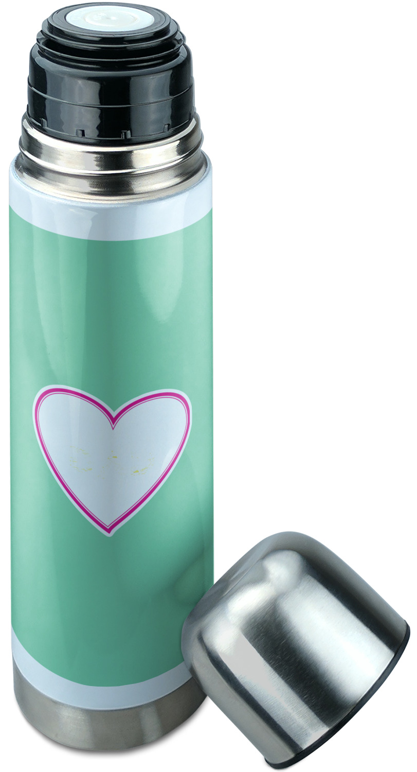 Manufactured from stainless steel, this thermos is built durably and double-walled insulated to preserve the temperature of your drink for hours. It also features a screw off lid that is made to also function as a small cup. Upon unscrewing this part of the thermos bottle, a pop-open, pour feature emerges. This feature allows you to slowly pour your beverage into your lid, ensuring a steady, controlled pour into your lid or other cup. With a capacity of 25 ounces, these large thermoses can hold several servings of your favorite beverage. Your customization is displayed all around the bottle with bright, vibrant color.