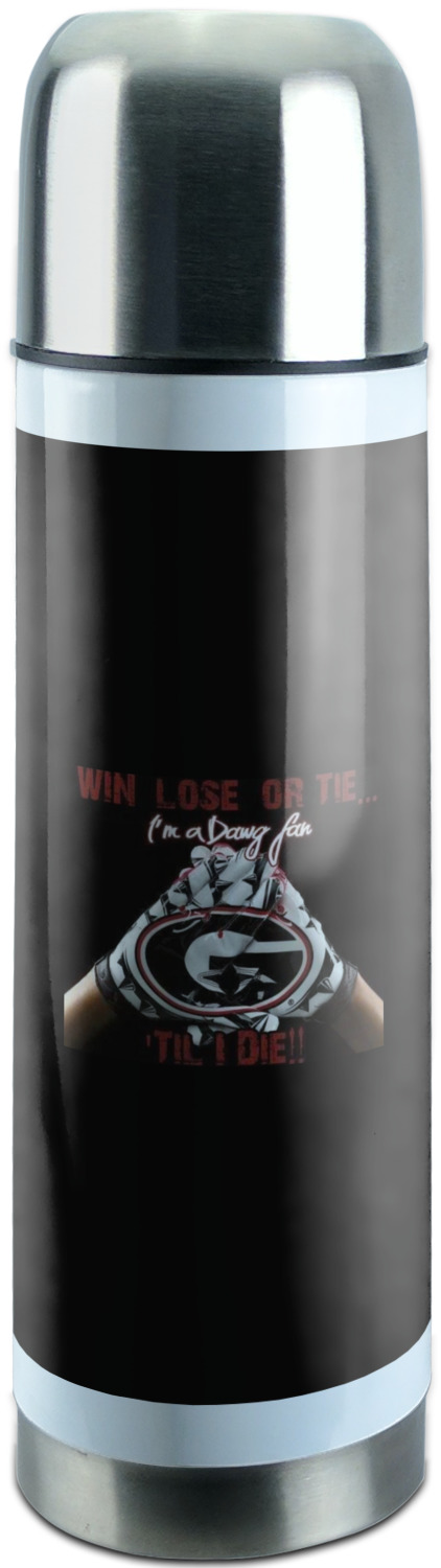 Manufactured from stainless steel, this thermos is built durably and double-walled insulated to preserve the temperature of your drink for hours. It also features a screw off lid that is made to also function as a small cup. Upon unscrewing this part of the thermos bottle, a pop-open, pour feature emerges. This feature allows you to slowly pour your beverage into your lid, ensuring a steady, controlled pour into your lid or other cup. With a capacity of 25 ounces, these large thermoses can hold several servings of your favorite beverage. Your customization is displayed all around the bottle with bright, vibrant color.