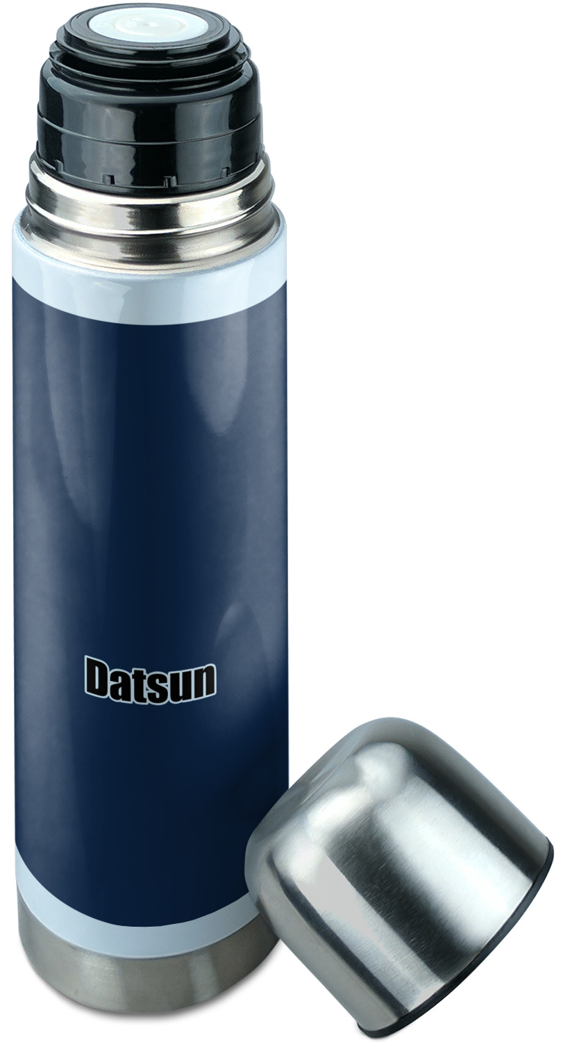 Manufactured from stainless steel, this thermos is built durably and double-walled insulated to preserve the temperature of your drink for hours. It also features a screw off lid that is made to also function as a small cup. Upon unscrewing this part of the thermos bottle, a pop-open, pour feature emerges. This feature allows you to slowly pour your beverage into your lid, ensuring a steady, controlled pour into your lid or other cup. With a capacity of 25 ounces, these large thermoses can hold several servings of your favorite beverage. Your customization is displayed all around the bottle with bright, vibrant color.