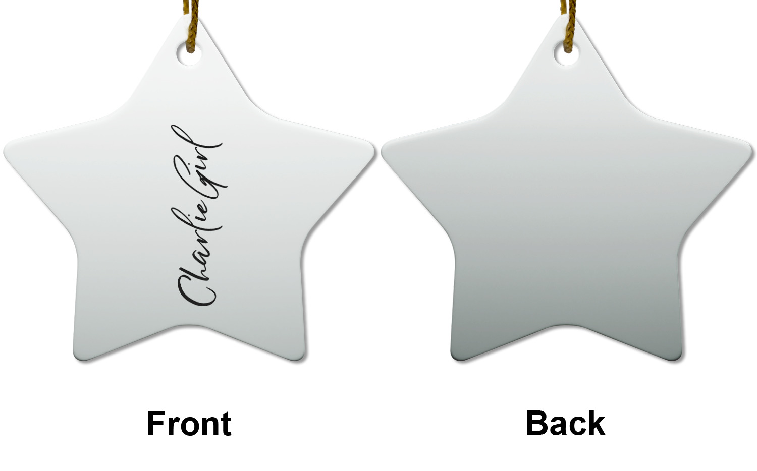 Our ceramic ornaments are a nice touch of pottery like accents not only for a rustic of vintage-themed Christmas but for any style you want to do this holiday! We carry a selection of flat ceramics to personalize. Choose from a round, star, or heart-shaped porcelain ornament to design! Each shape is approximately 3" x 3" and is perfect for long term use to adorn your tree every holiday! Use our online design studio to personalize your own ceramic ornament today!