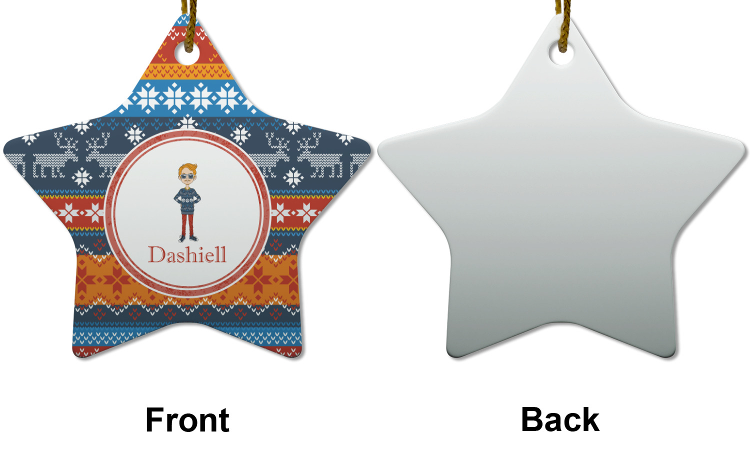 Hipster Winter Design on Custom Star Ceramic Ornament