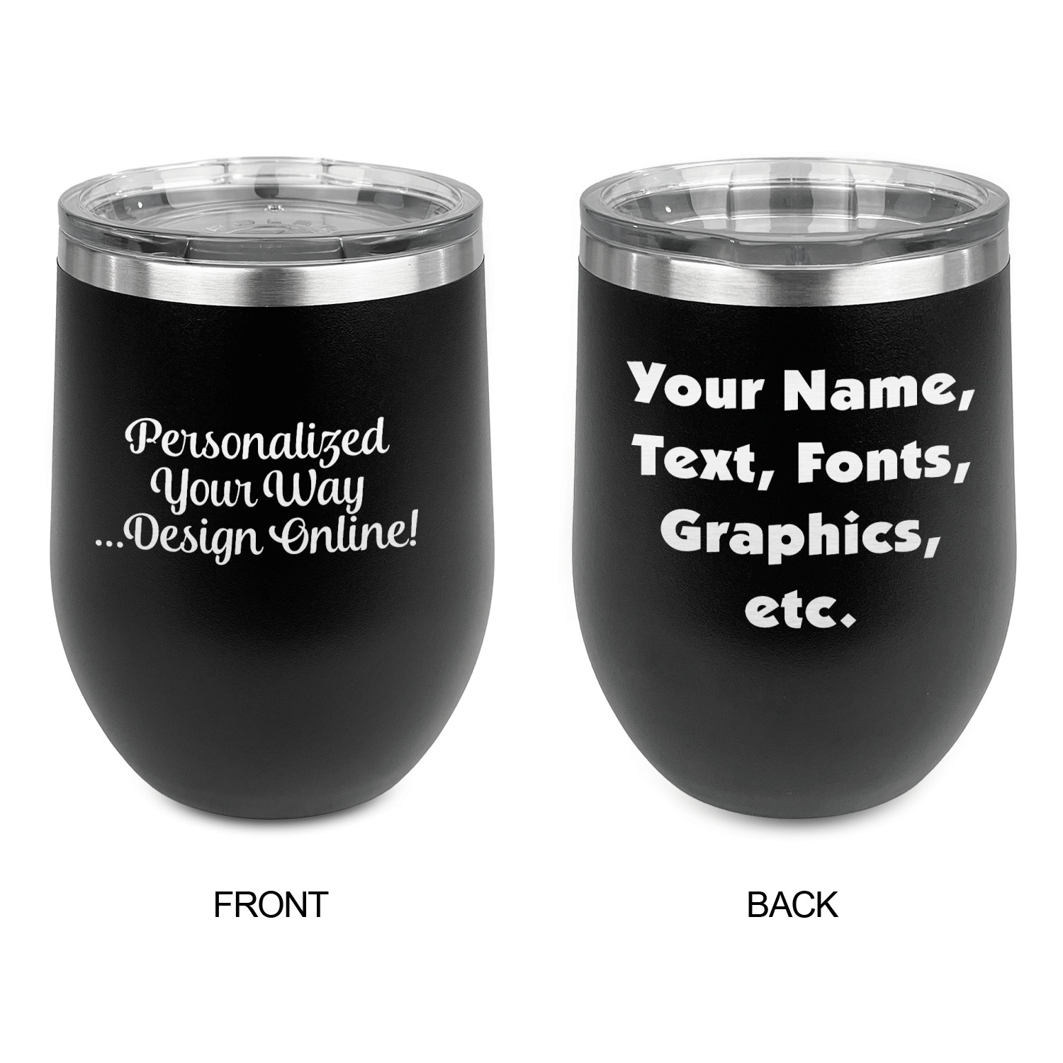 Design your wine tumbler with a cool graphic or quote. Even put your initials or monogram! These cups are laser engraved, which looks extra sharp on the metal tumbler.