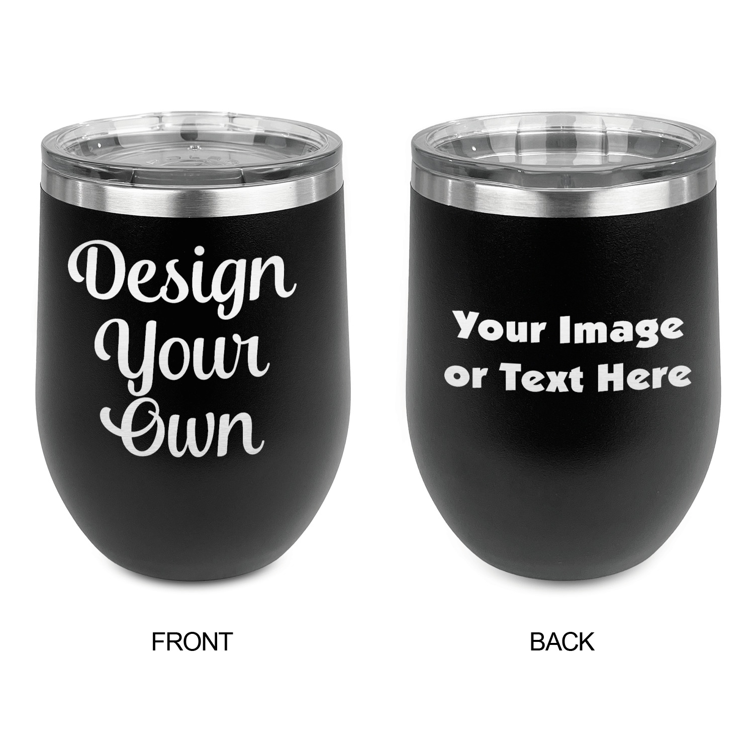 Design your wine tumbler with a cool graphic or quote. Even put your initials or monogram! These cups are laser engraved, which looks extra sharp on the metal tumbler.