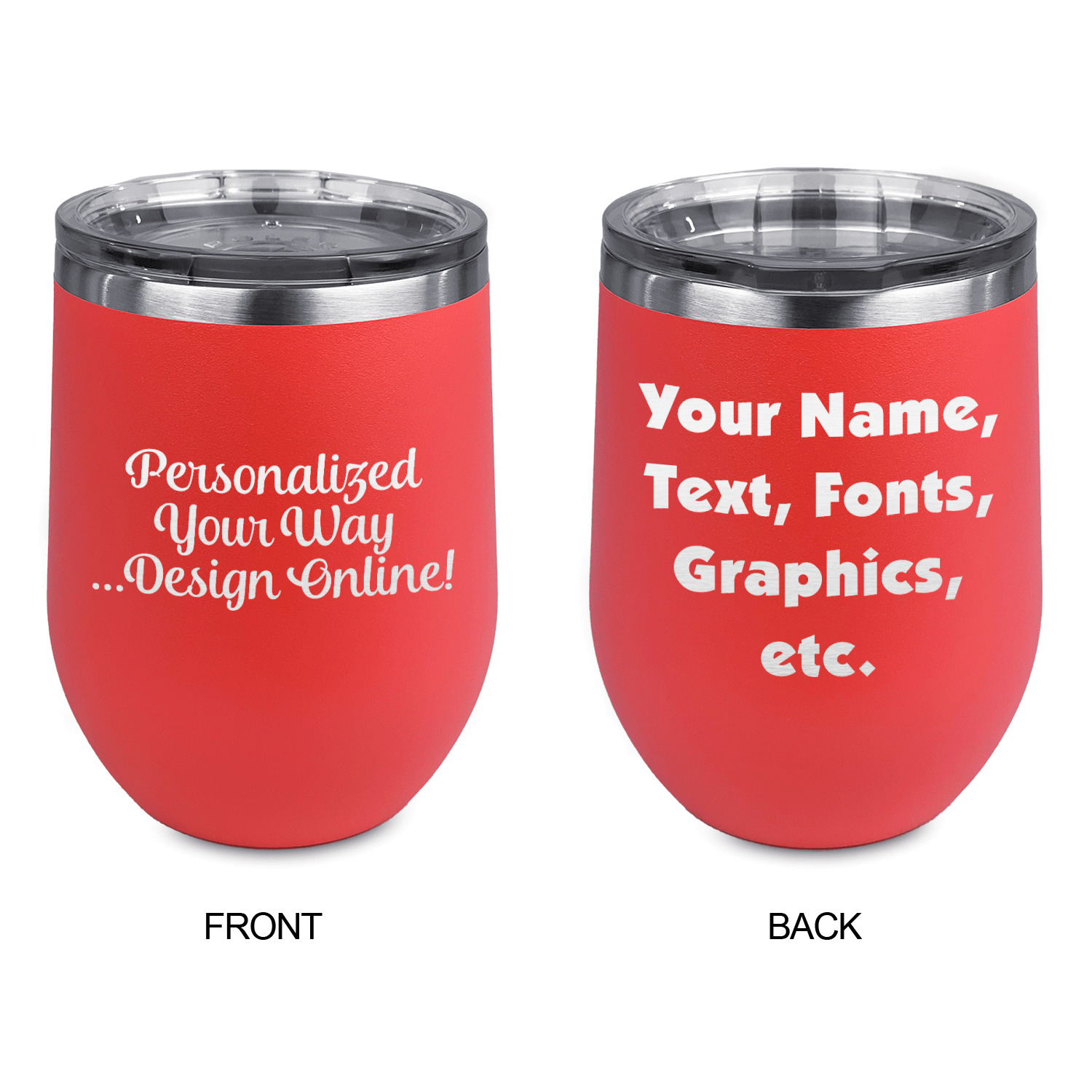 Design your wine tumbler with a cool graphic or quote. Even put your initials or monogram! These cups are laser engraved, which looks extra sharp on the metal tumbler.