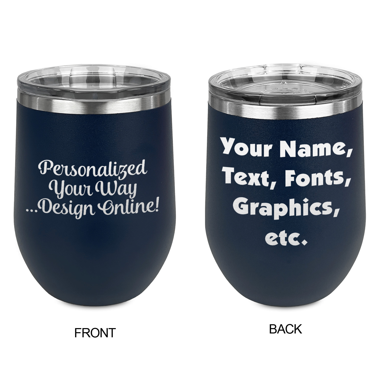 Design your wine tumbler with a cool graphic or quote. Even put your initials or monogram! These cups are laser engraved, which looks extra sharp on the metal tumbler.