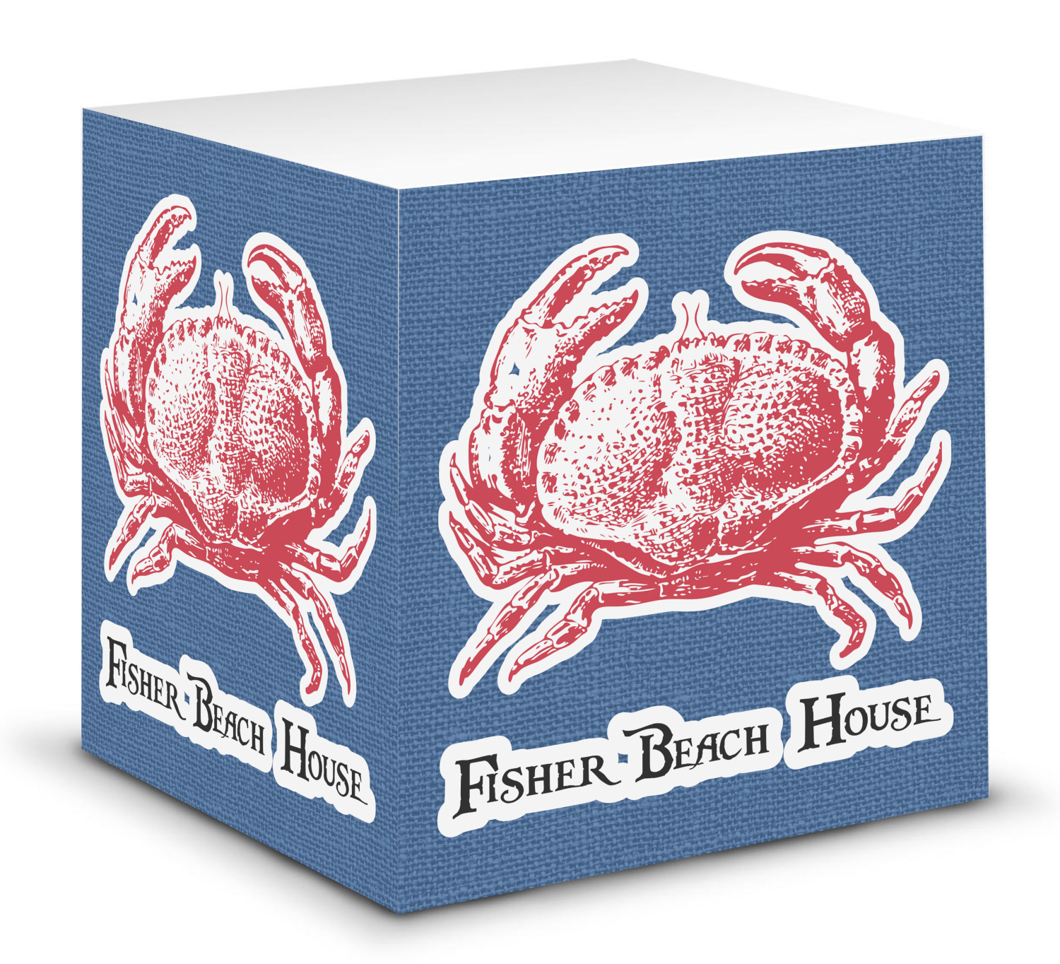 This note cube features 700 sheets of matte, white paper. Each sheet measures at 3.5 by 3.5 inches and has an adhesive strip at its top. Your personalized design is displayed on all four edges of the sticky pad.