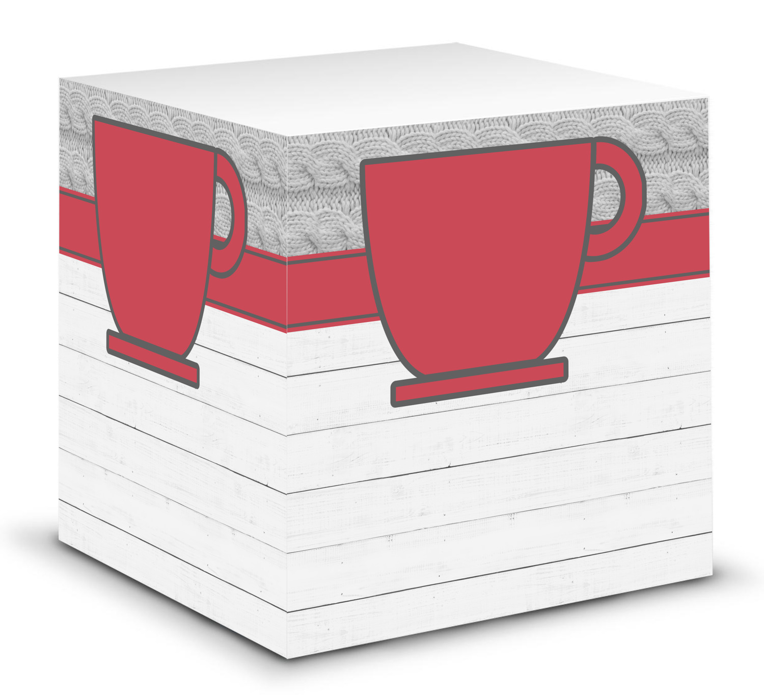 This note cube features 700 sheets of matte, white paper. Each sheet measures at 3.5 by 3.5 inches and has an adhesive strip at its top. Your personalized design is displayed on all four edges of the sticky pad.