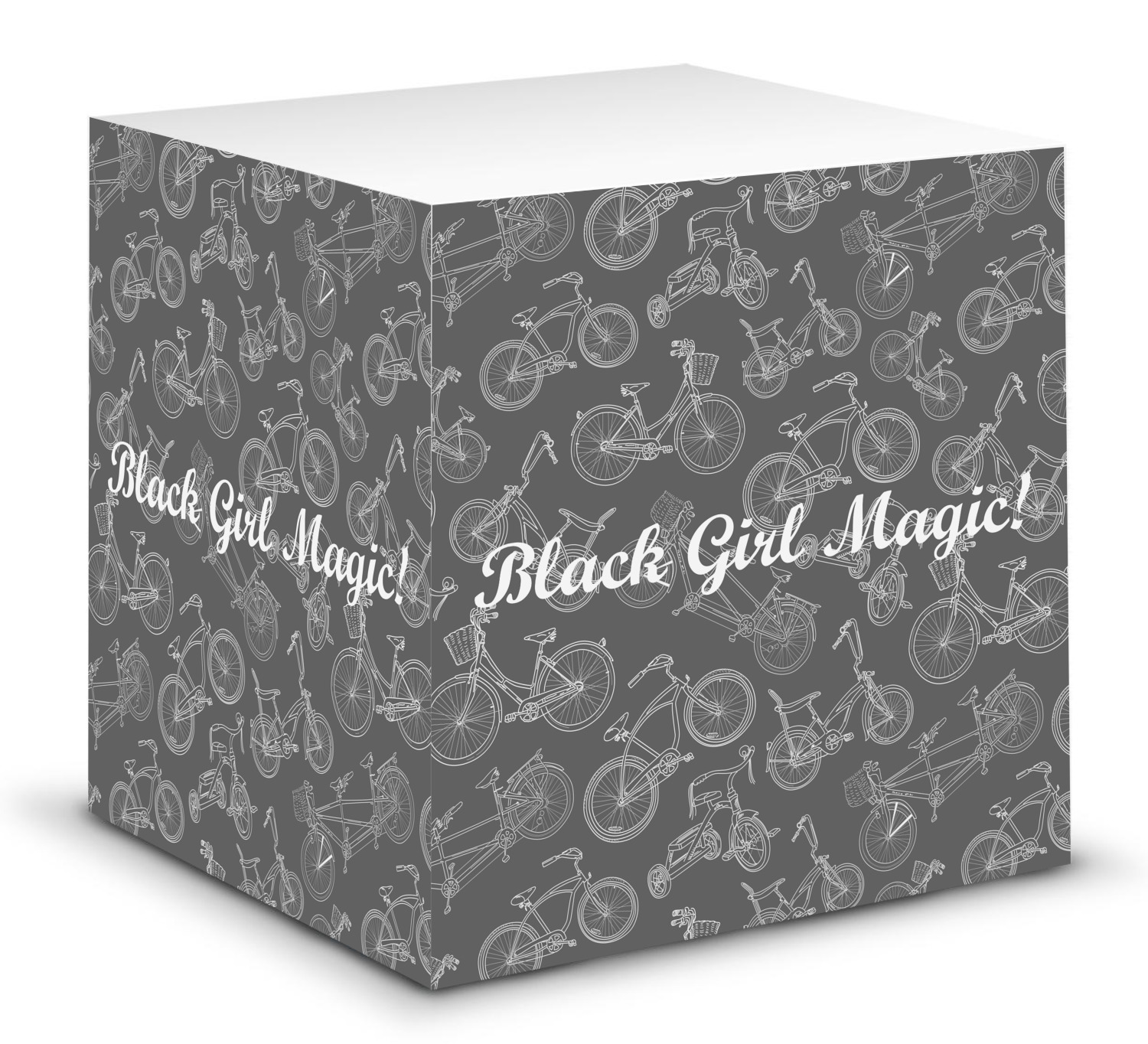 This note cube features 700 sheets of matte, white paper. Each sheet measures at 3.5 by 3.5 inches and has an adhesive strip at its top. Your personalized design is displayed on all four edges of the sticky pad.