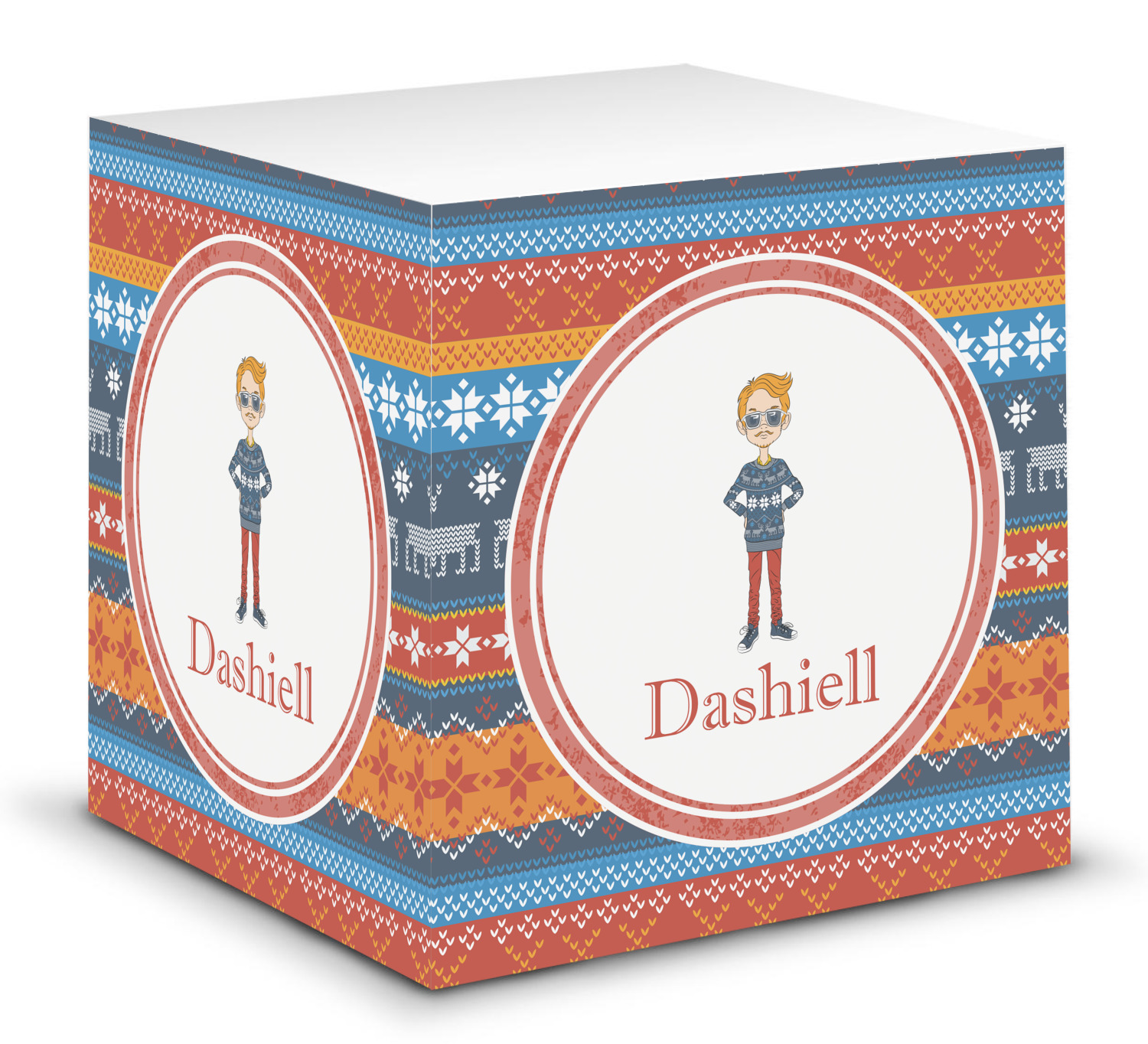 This note cube features 700 sheets of matte, white paper. Each sheet measures at 3.5 by 3.5 inches and has an adhesive strip at its top. Your personalized design is displayed on all four edges of the sticky pad.