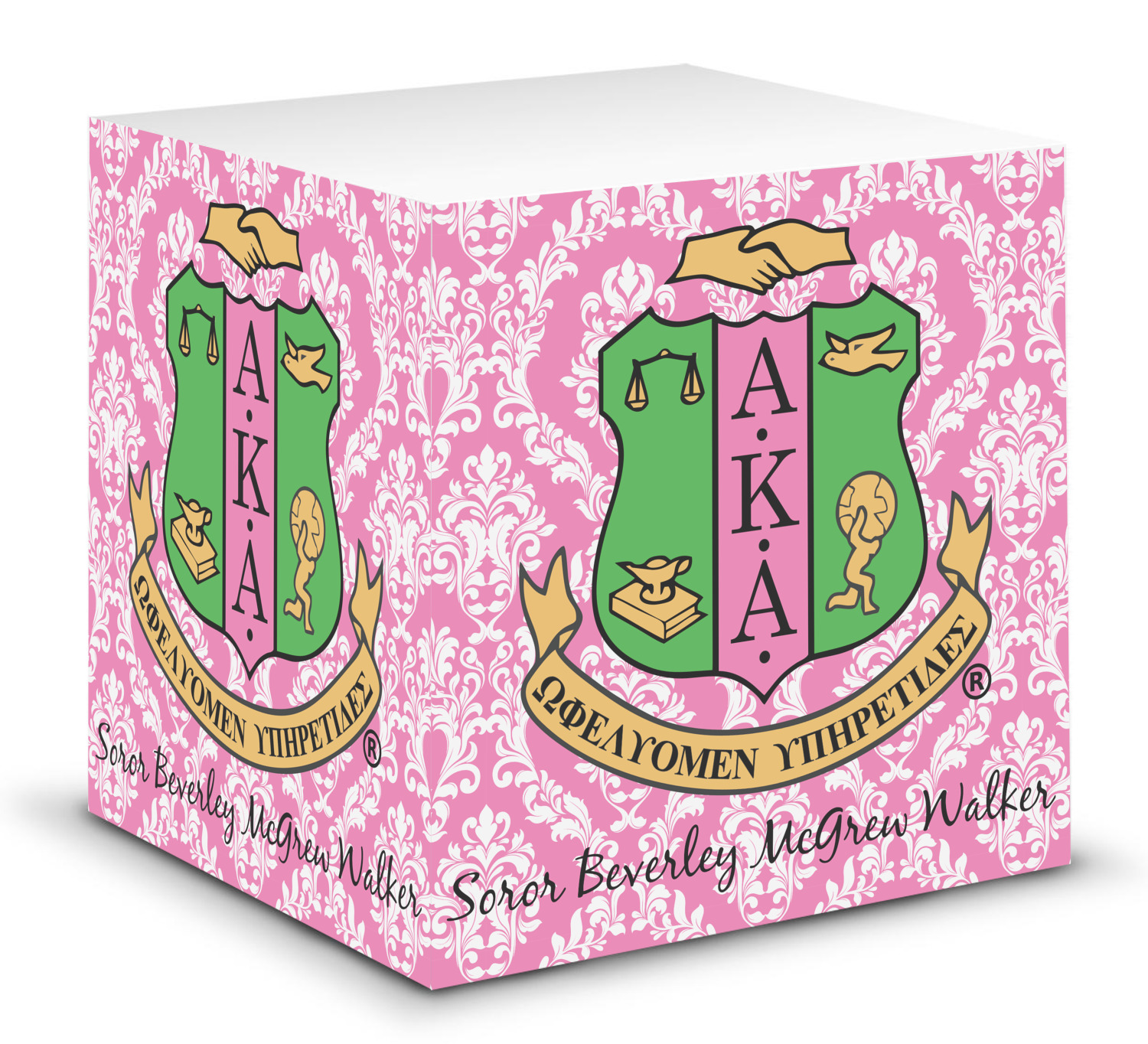 This note cube features 700 sheets of matte, white paper. Each sheet measures at 3.5 by 3.5 inches and has an adhesive strip at its top. Your personalized design is displayed on all four edges of the sticky pad.