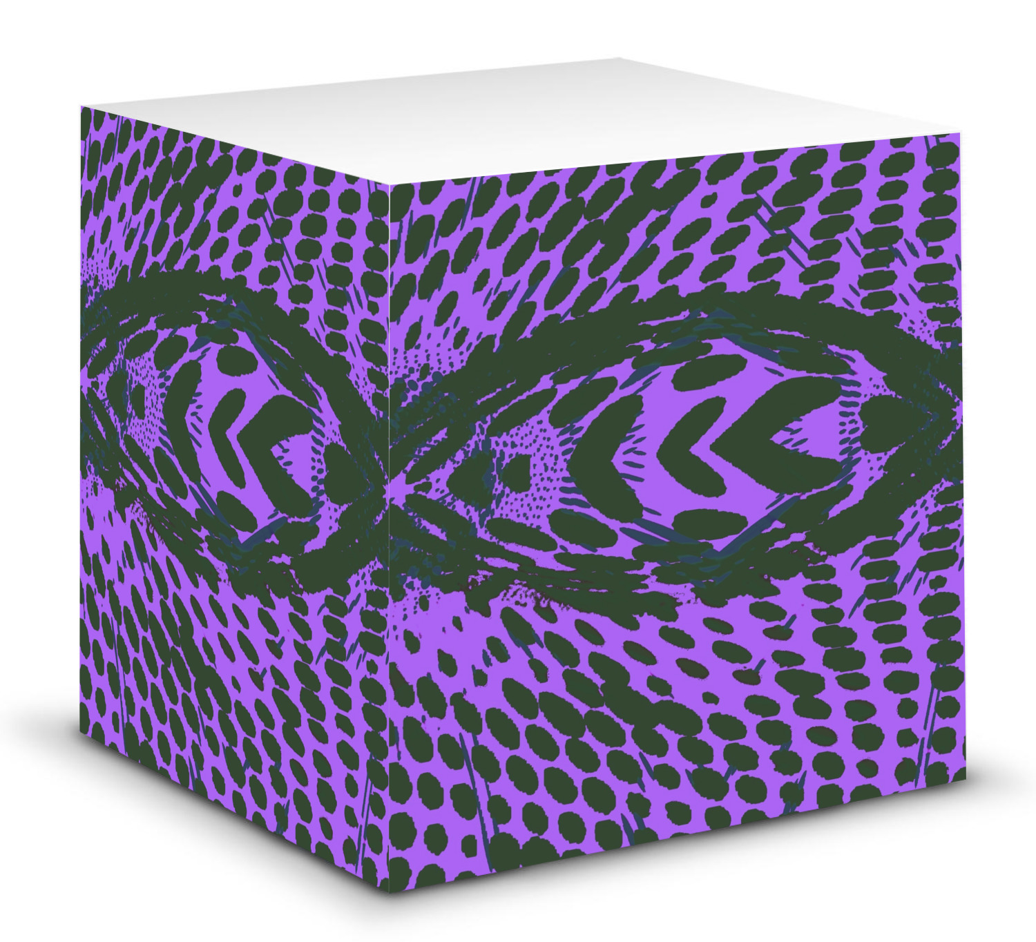 This note cube features 700 sheets of matte, white paper. Each sheet measures at 3.5 by 3.5 inches and has an adhesive strip at its top. Your personalized design is displayed on all four edges of the sticky pad.