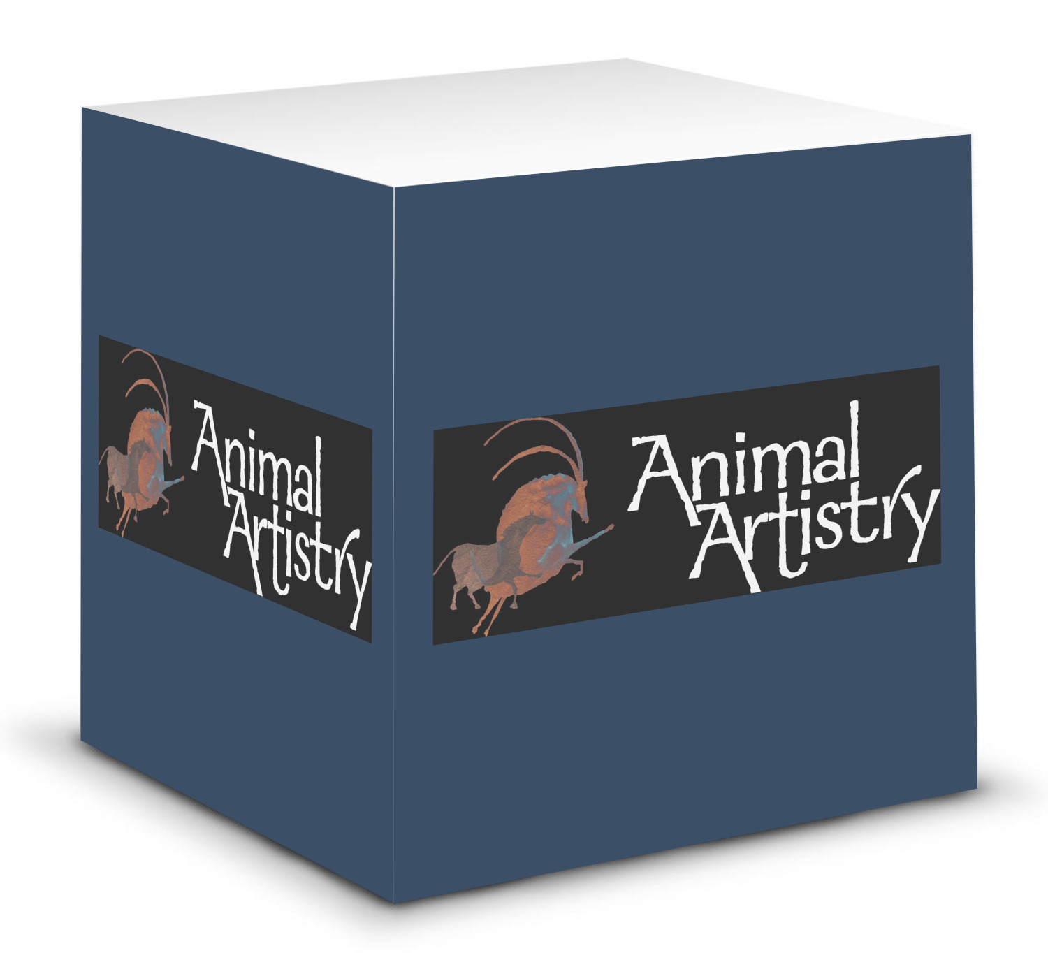 This note cube features 700 sheets of matte, white paper. Each sheet measures at 3.5 by 3.5 inches and has an adhesive strip at its top. Your personalized design is displayed on all four edges of the sticky pad.