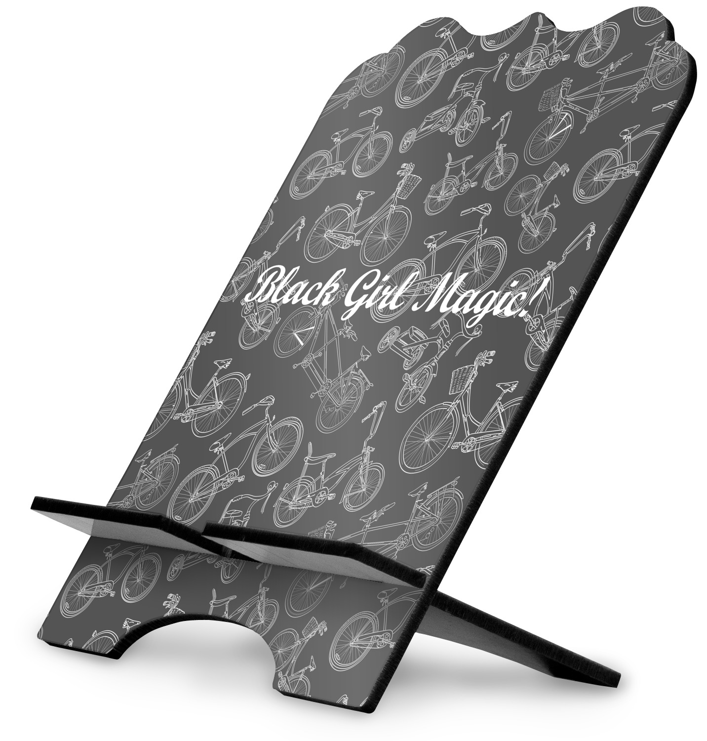 The stand is comprised of two hardboard pieces that fit snugly together and stabilize one another. The bottom part of the iPad stand supports your tablet, and has space for your tablets charger while in use. At 9.25" x 11.5", this tablet mount can support a device between the sizes of the iPad Pro and the iPad Mini 2. The uppermost part of the stand features a decorative, curved edge for a classy, suave appearance. We print your customization atop the face of the stand, in vibrant color. The remaining sides are colored a sleek black.
