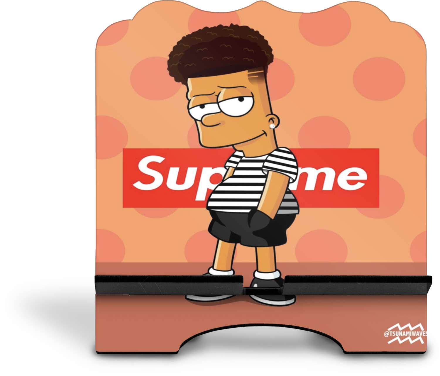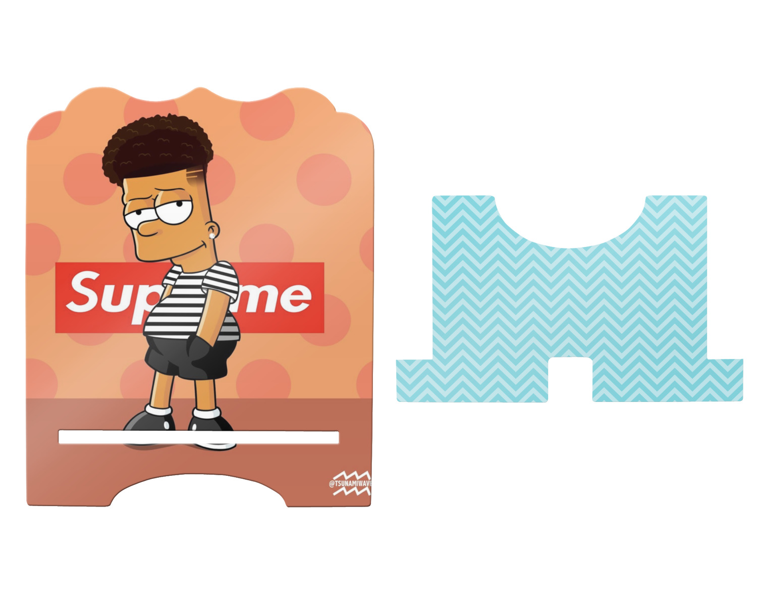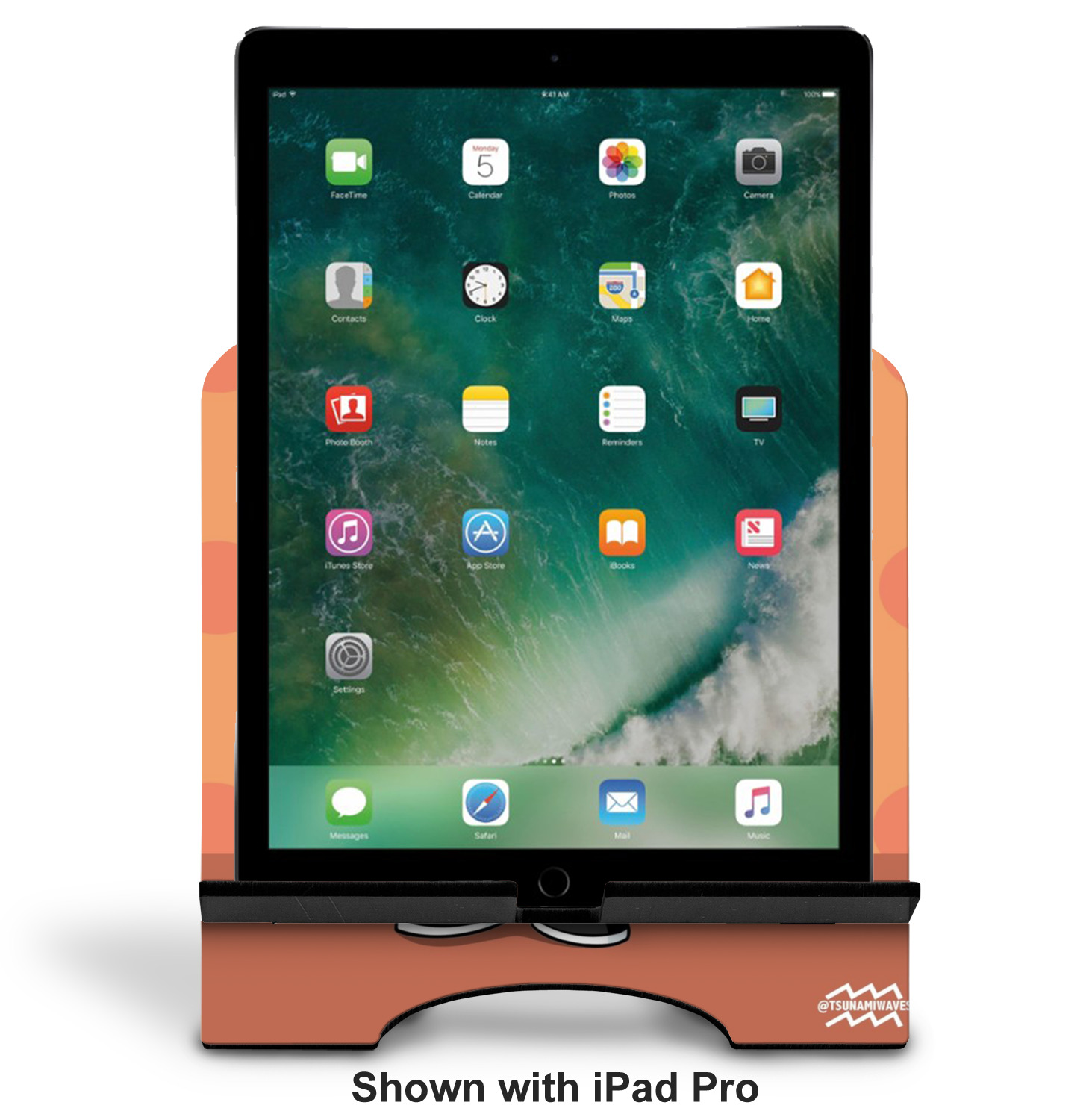 The stand is comprised of two hardboard pieces that fit snugly together and stabilize one another. The bottom part of the iPad stand supports your tablet, and has space for your tablets charger while in use. At 9.25" x 11.5", this tablet mount can support a device between the sizes of the iPad Pro and the iPad Mini 2. The uppermost part of the stand features a decorative, curved edge for a classy, suave appearance. We print your customization atop the face of the stand, in vibrant color. The remaining sides are colored a sleek black.