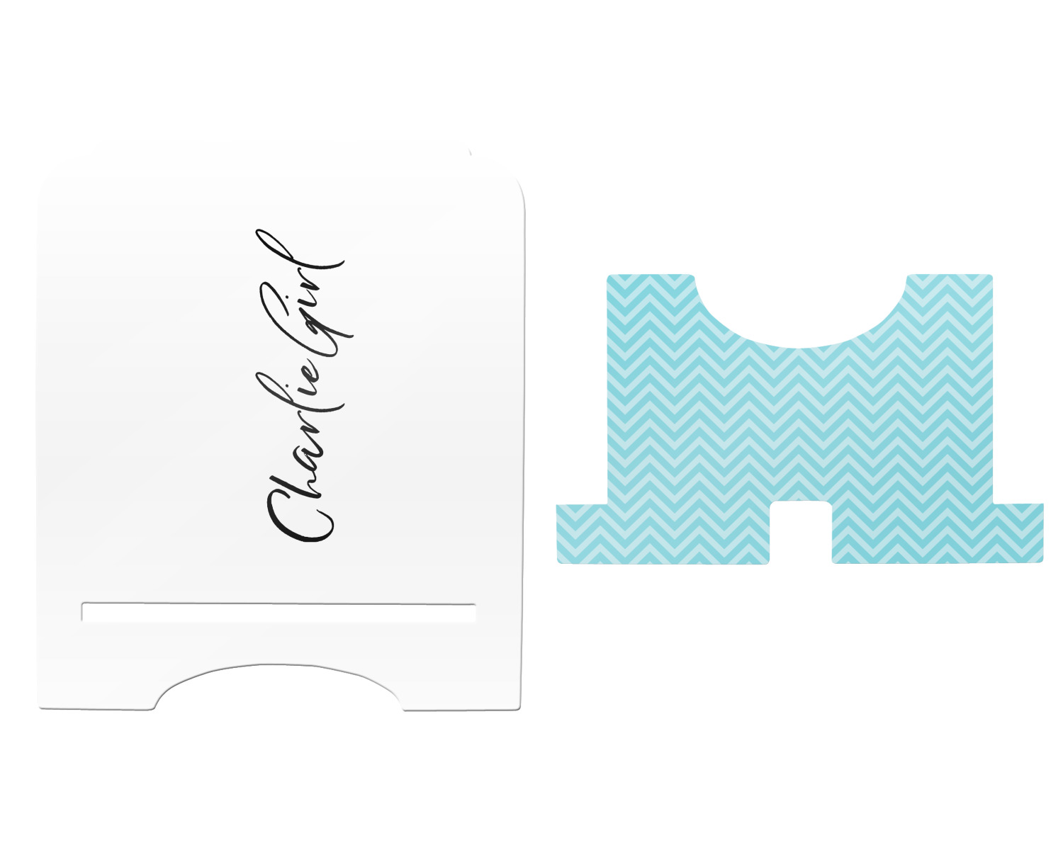 Personalize a nifty place to store your tablet by purchasing one of our tablet stands! These tablet holders add a touch of personality to the décor of any room, while storing your tablet for easy access! The beauty of this stand lies in its multiple functions; it can be used to search for recipes while cooking, to support your screen while watching movies, and much more!