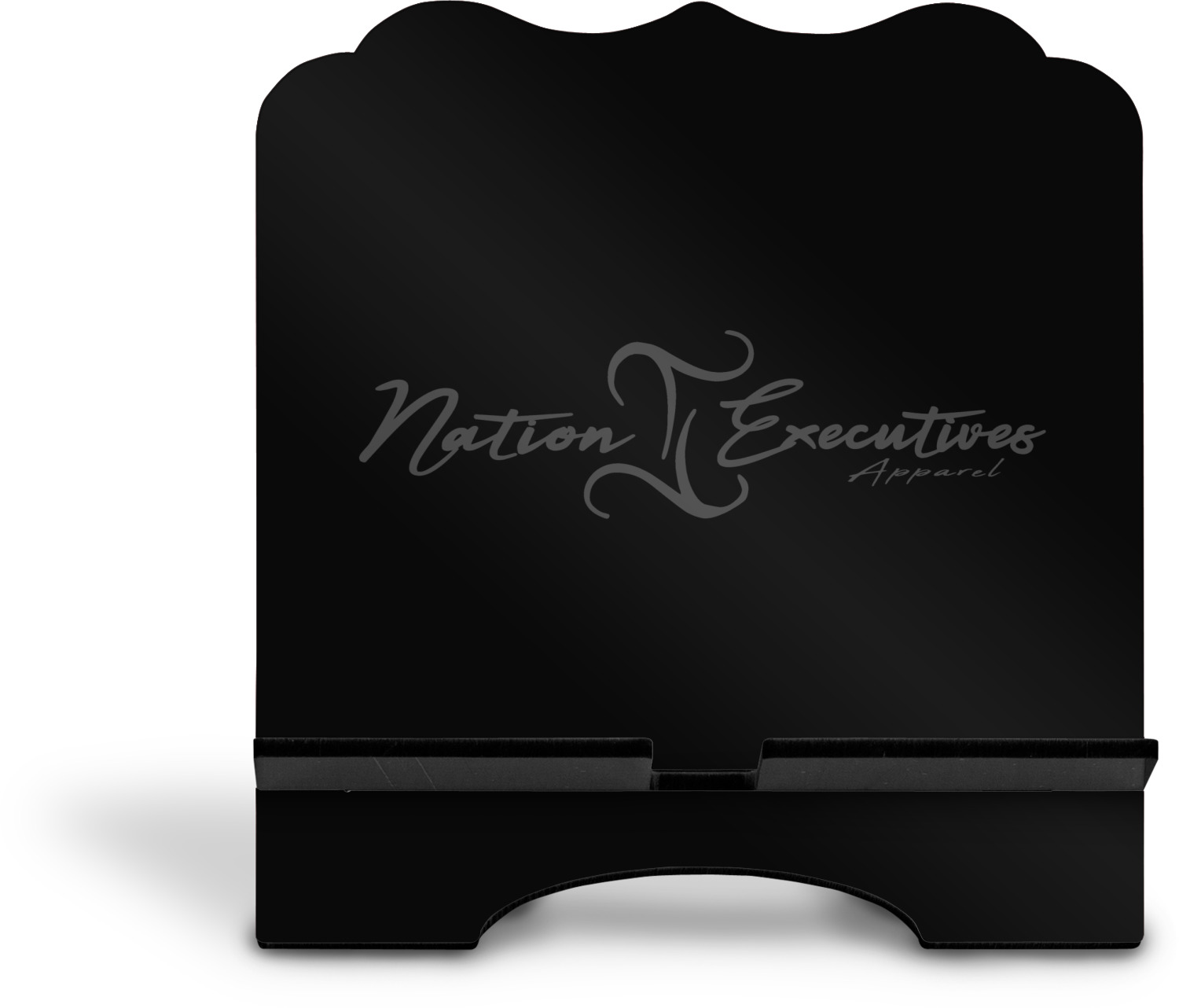 The stand is comprised of two hardboard pieces that fit snugly together and stabilize one another. The bottom part of the iPad stand supports your tablet, and has space for your tablets charger while in use. At 9.25" x 11.5", this tablet mount can support a device between the sizes of the iPad Pro and the iPad Mini 2. The uppermost part of the stand features a decorative, curved edge for a classy, suave appearance. We print your customization atop the face of the stand, in vibrant color. The remaining sides are colored a sleek black.