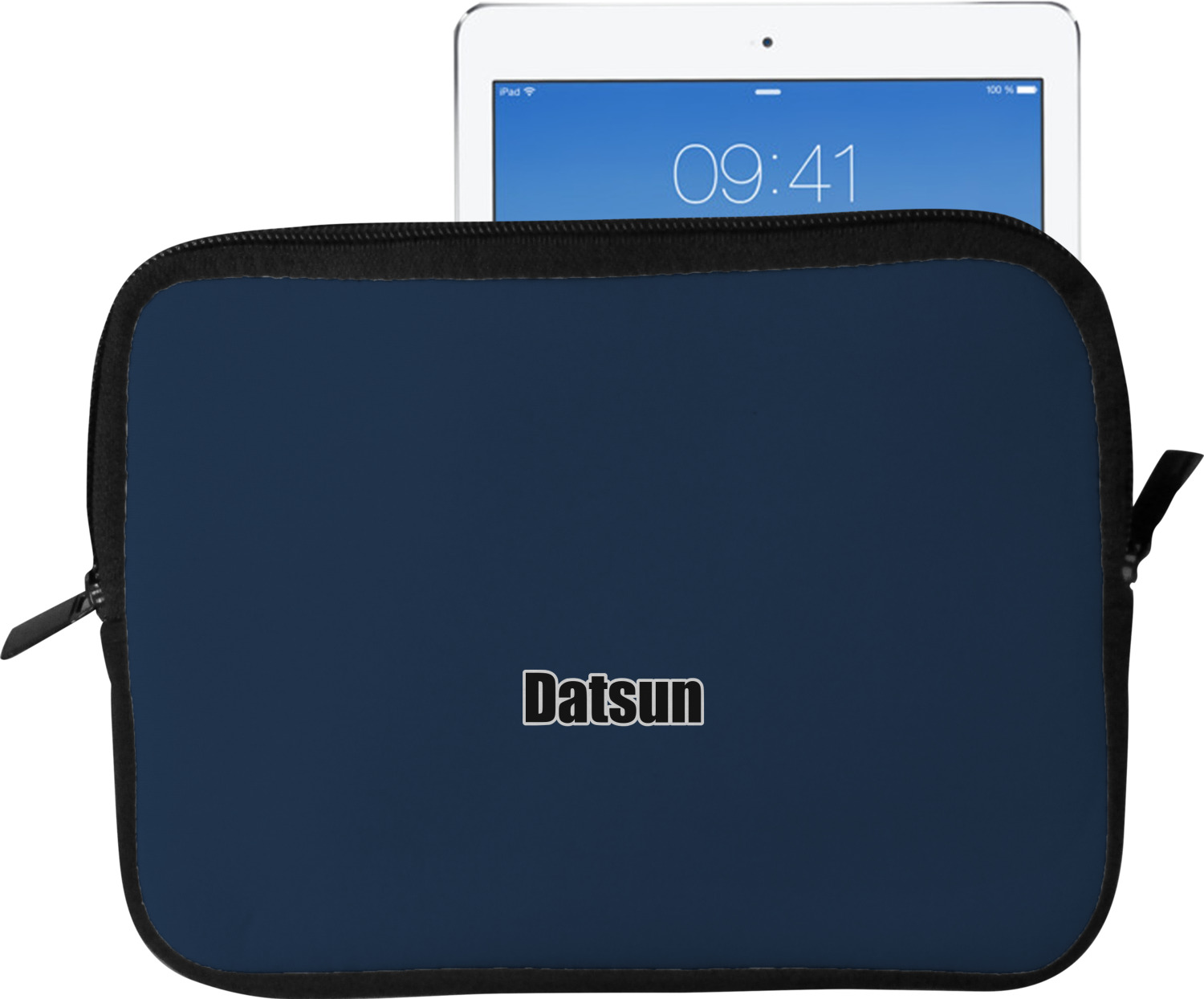 These tablet covers are fabricated from a water-resistant neoprene, and feature a zipper at its top for easy access to your device. The supple, cushioned nature of the neoprene will protect your tablet from the mishaps of daily life. Your personalized design is printed on the front of the I-Pad case, while the remaining sides are black in color. We provide this case in two sizes, in order to best accommodate your device. Our smaller size can fit a tablet with an 11 inch screen, while our larger sleeve is better suited for devices with approximately a 13 inch screen.