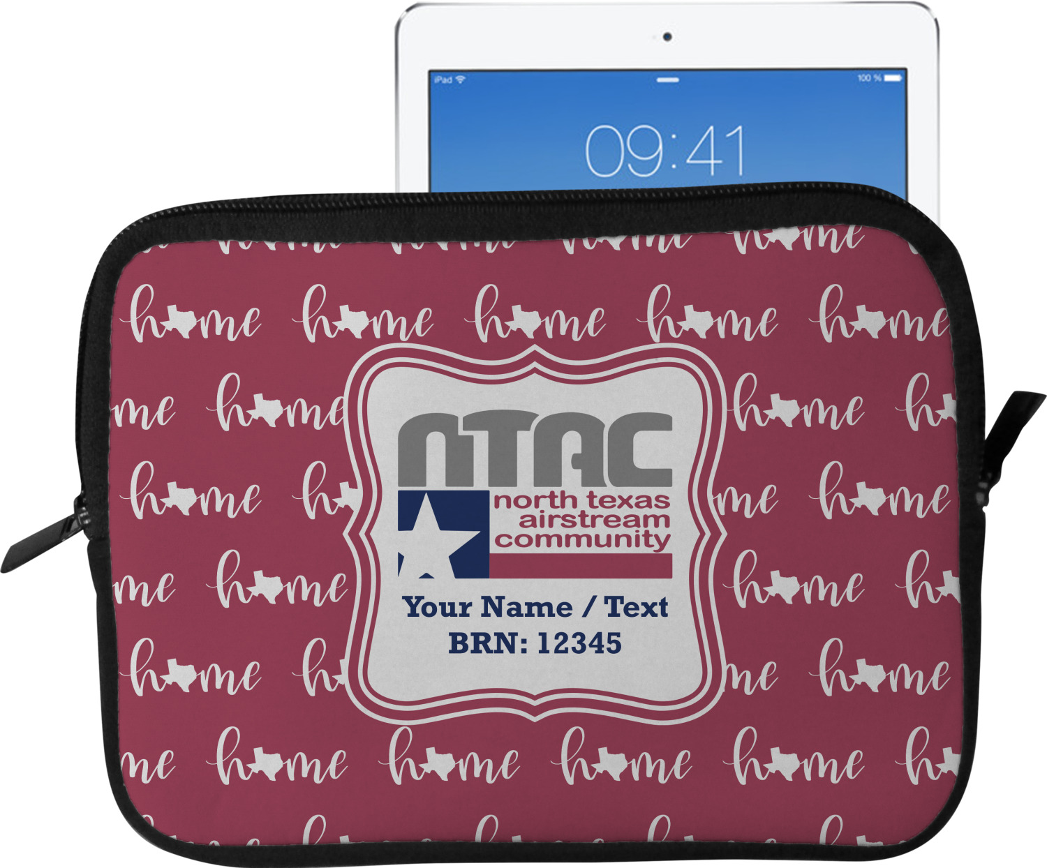 These tablet covers are fabricated from a water-resistant neoprene, and feature a zipper at its top for easy access to your device. The supple, cushioned nature of the neoprene will protect your tablet from the mishaps of daily life. Your personalized design is printed on the front of the I-Pad case, while the remaining sides are black in color. We provide this case in two sizes, in order to best accommodate your device. Our smaller size can fit a tablet with an 11 inch screen, while our larger sleeve is better suited for devices with approximately a 13 inch screen.