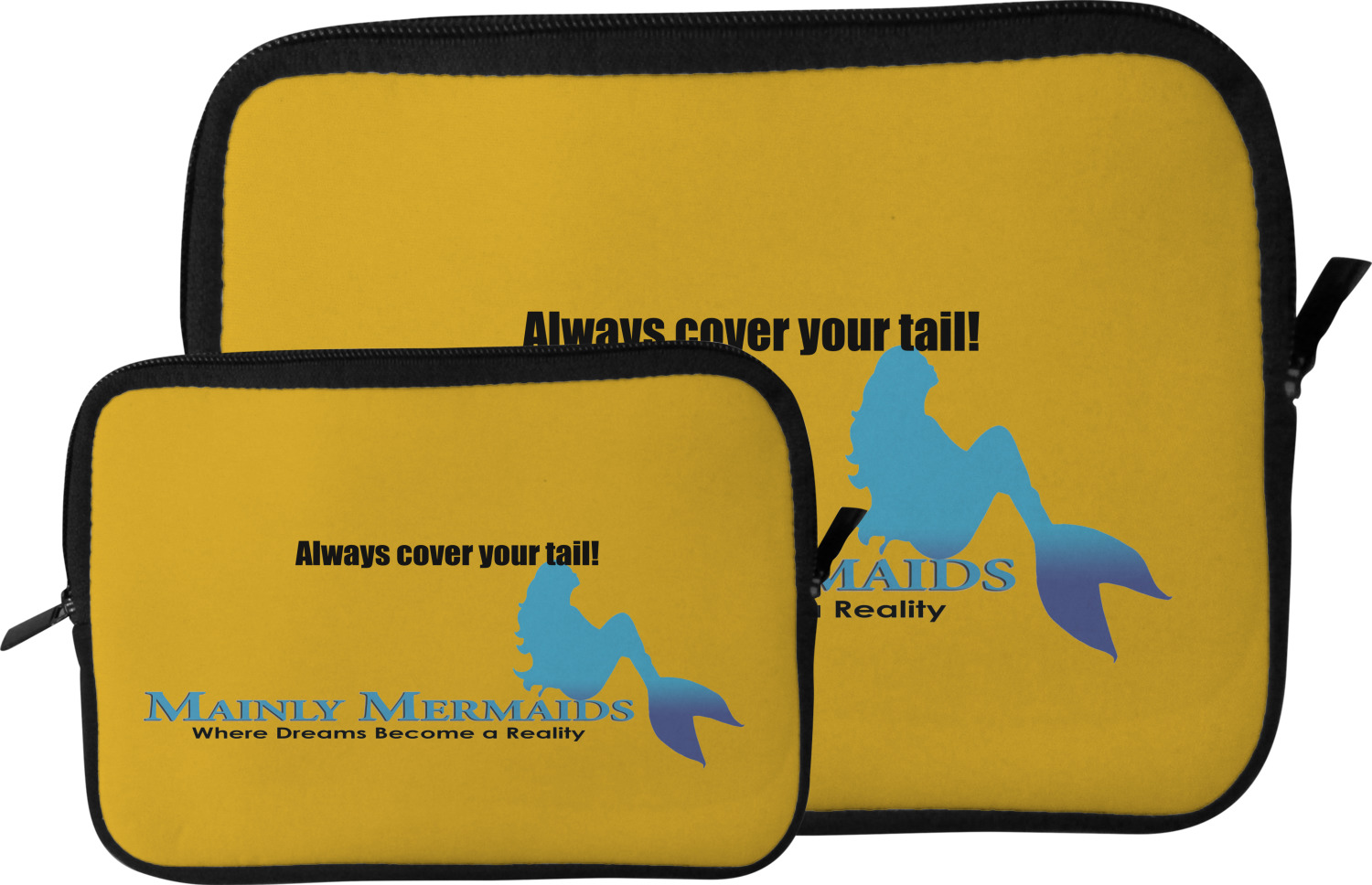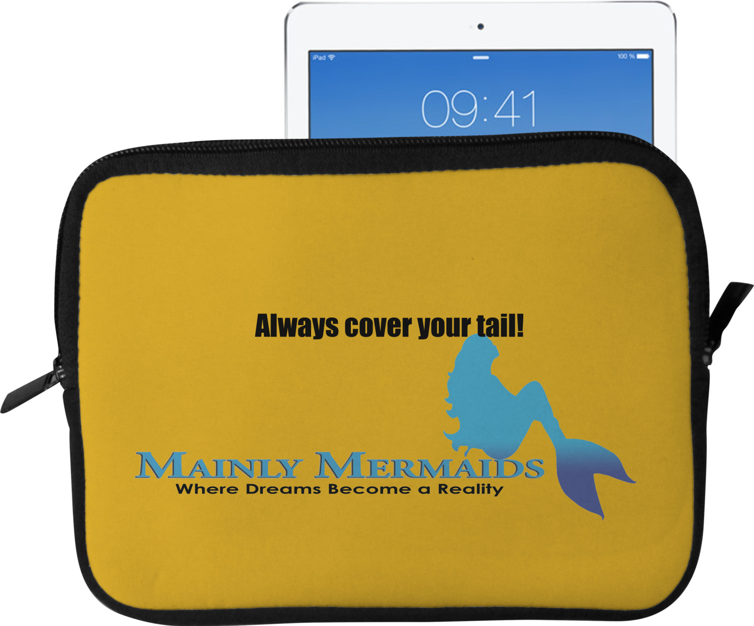 These tablet covers are fabricated from a water-resistant neoprene, and feature a zipper at its top for easy access to your device. The supple, cushioned nature of the neoprene will protect your tablet from the mishaps of daily life. Your personalized design is printed on the front of the I-Pad case, while the remaining sides are black in color. We provide this case in two sizes, in order to best accommodate your device. Our smaller size can fit a tablet with an 11 inch screen, while our larger sleeve is better suited for devices with approximately a 13 inch screen.