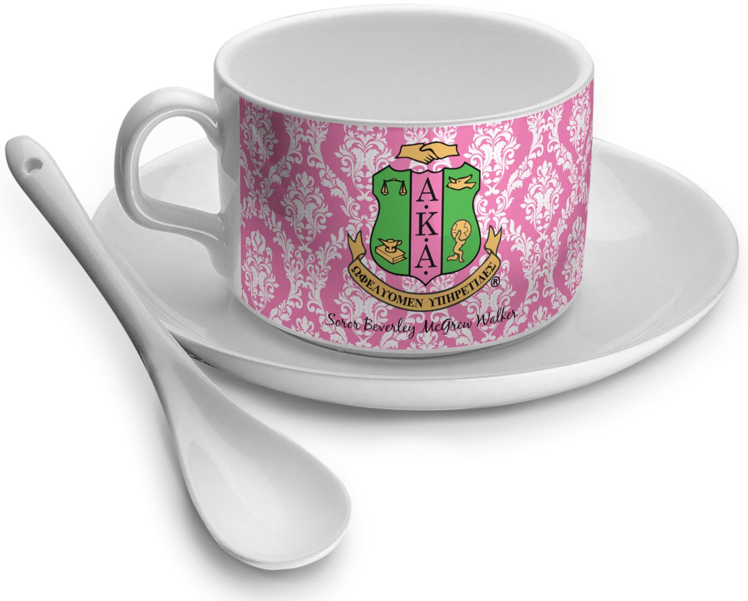 Personalize your cup with the perfect design! The white ceramic makes for a bright background to whatever personalization you decide to add to your little cup. Give your tea or coffee some class! Choose from thousands of patterns and fills in our system to fit your personality! Change whatever elements you like from the text to the ribbons to the graphics.