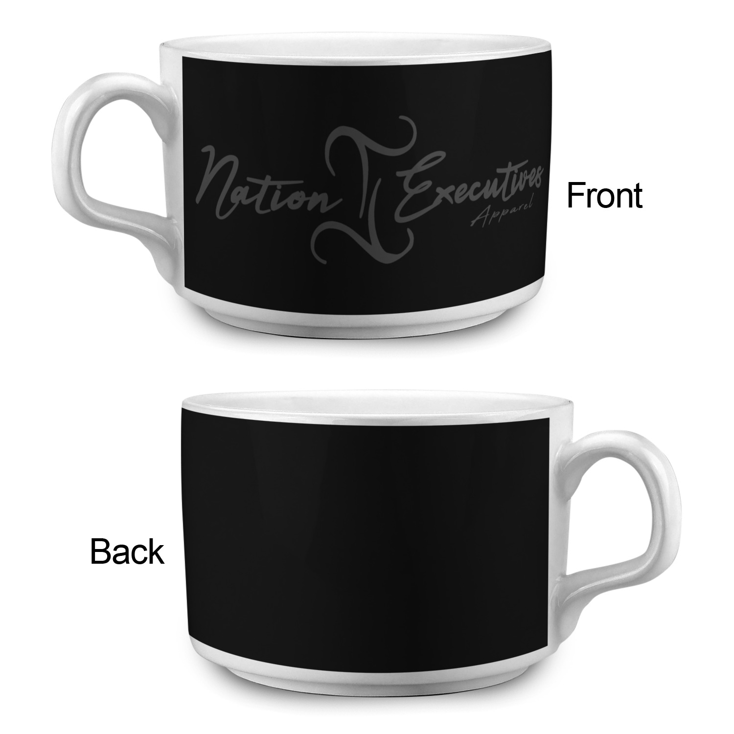 Personalize your cup with the perfect design! The white ceramic makes for a bright background to whatever personalization you decide to add to your little cup. Give your tea or coffee some class! Choose from thousands of patterns and fills in our system to fit your personality! Change whatever elements you like from the text to the ribbons to the graphics.