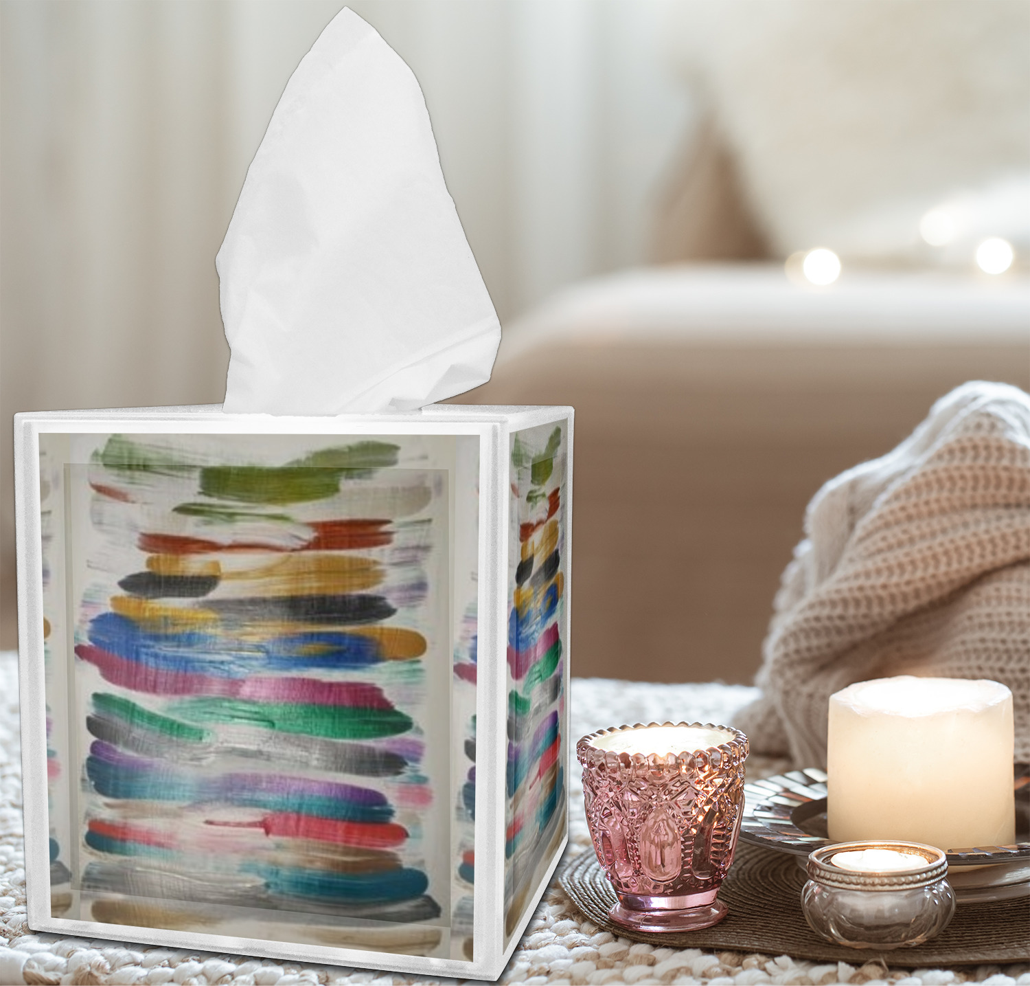 Looking to pair your brand new tissue box cover with additional accessories? We invite you to shop by room by choosing from our Bathroom, Bedroom, Home Decor categories, and more! If this tissue box is for a bathroom, consider pairing it with toothbrush holders or wastebaskets! If this is for a bedroom, try customizing a matching lampshade for it! The options for personalization are limitless.