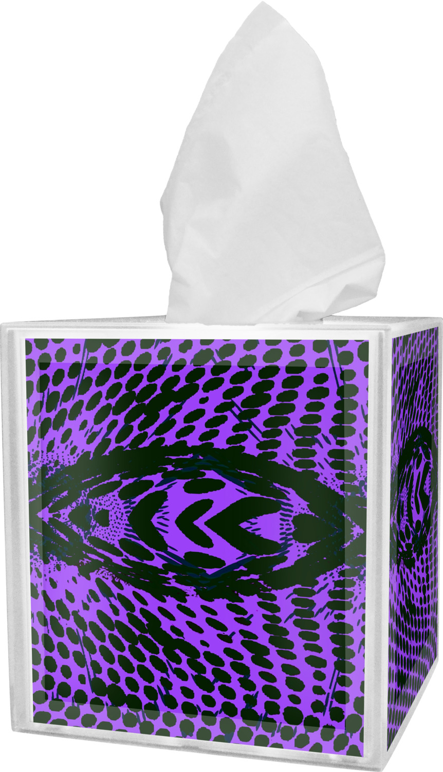 These tissue holders are built from durable acrylic and display your unique personalization on fine-quality vinyl inserts placed within the four sides and top. The box features two pieces, allowing you to easily switch out tissue boxes. On the sides, youll find ridges that ensure the top and base fit securely in place. The bottom of these tissue box holders has four, rubber, non-slip pads to prevent the box from scuffing any surface you decide to display it on. Each box can fit a standard 5 by 5-inch box of tissues.