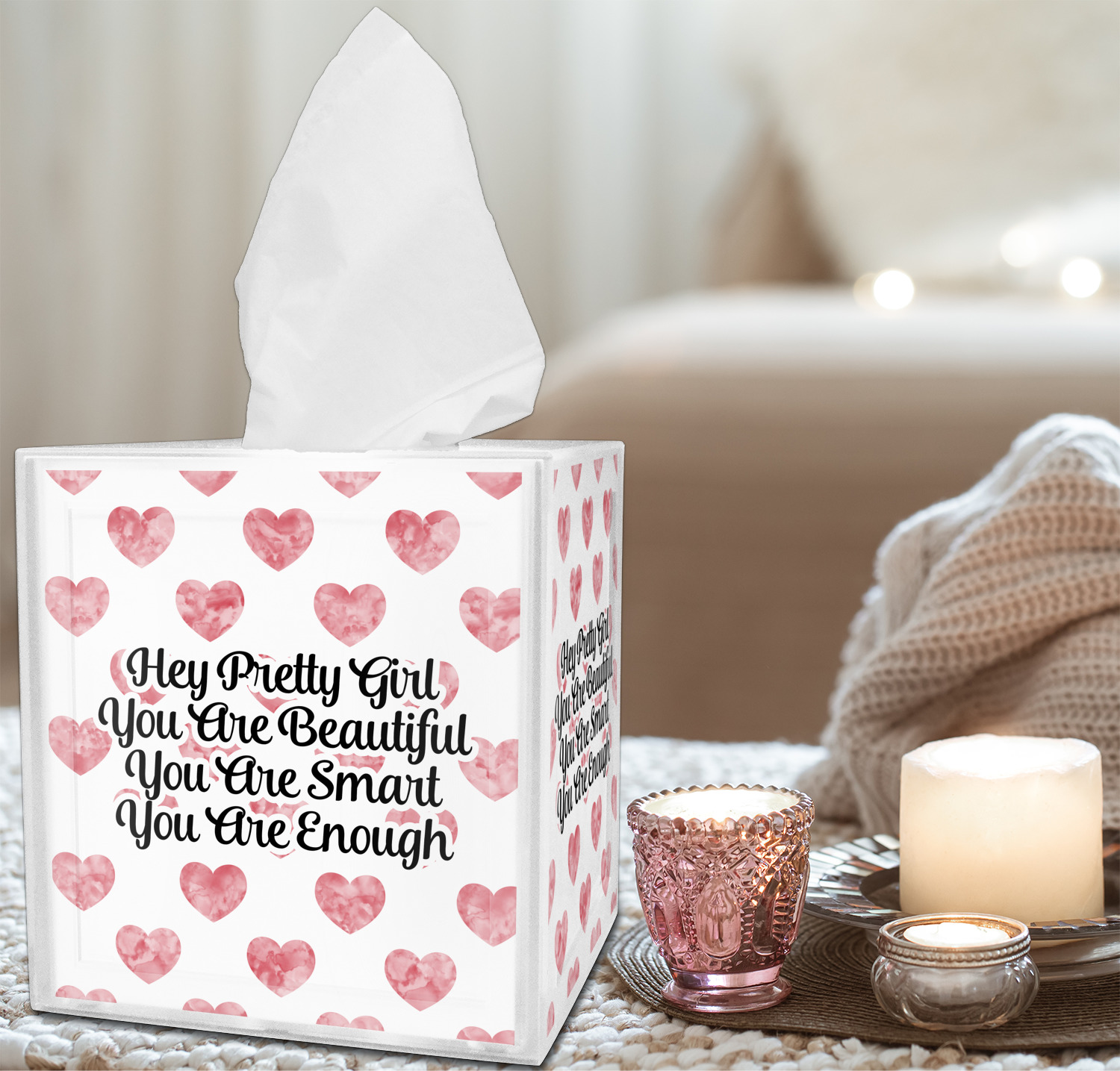 Looking to pair your brand new tissue box cover with additional accessories? We invite you to shop by room by choosing from our Bathroom, Bedroom, Home Decor categories, and more! If this tissue box is for a bathroom, consider pairing it with toothbrush holders or wastebaskets! If this is for a bedroom, try customizing a matching lampshade for it! The options for personalization are limitless.