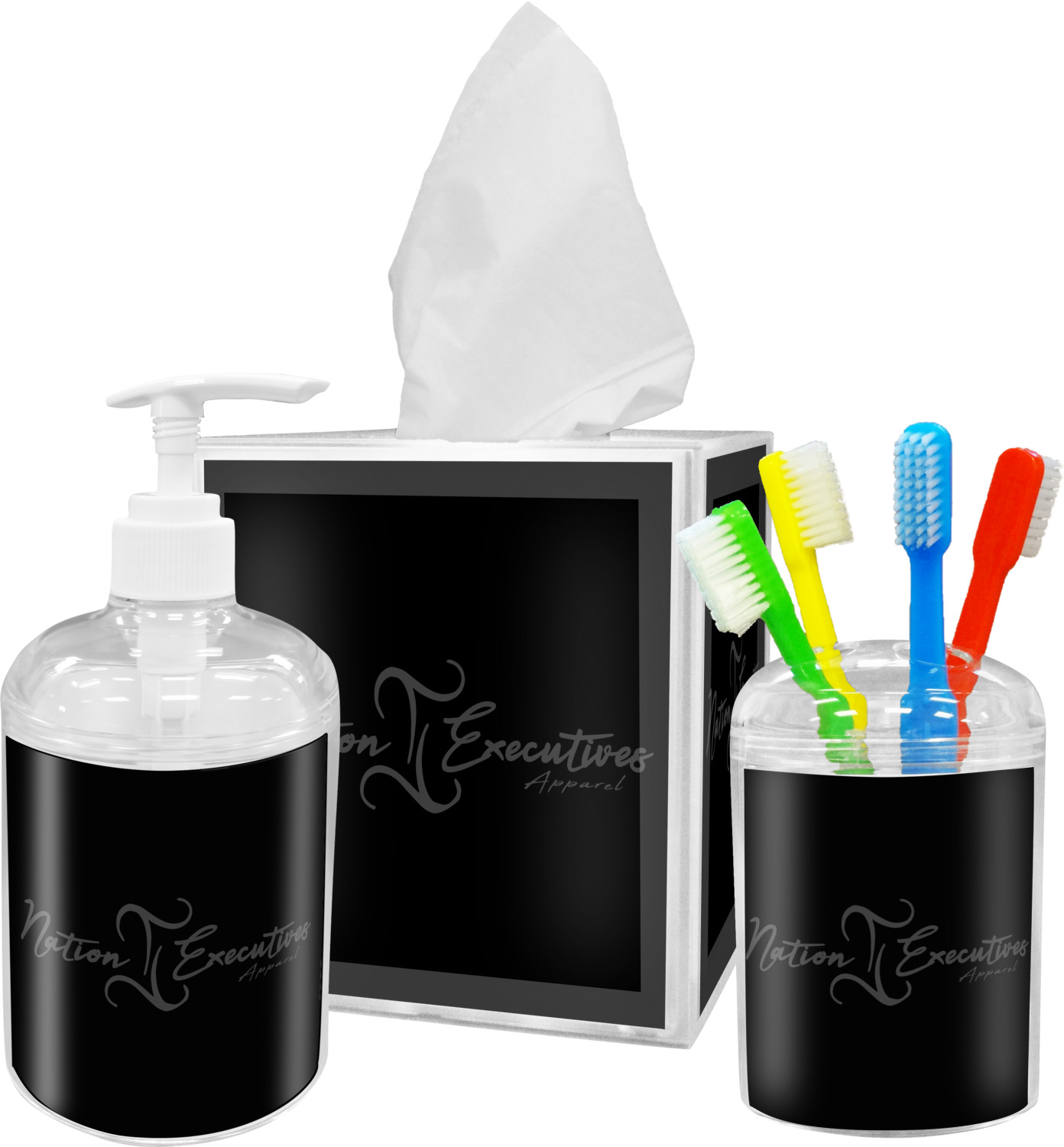These tissue holders are built from durable acrylic and display your unique personalization on fine-quality vinyl inserts placed within the four sides and top. The box features two pieces, allowing you to easily switch out tissue boxes. On the sides, youll find ridges that ensure the top and base fit securely in place. The bottom of these tissue box holders has four, rubber, non-slip pads to prevent the box from scuffing any surface you decide to display it on. Each box can fit a standard 5 by 5-inch box of tissues.