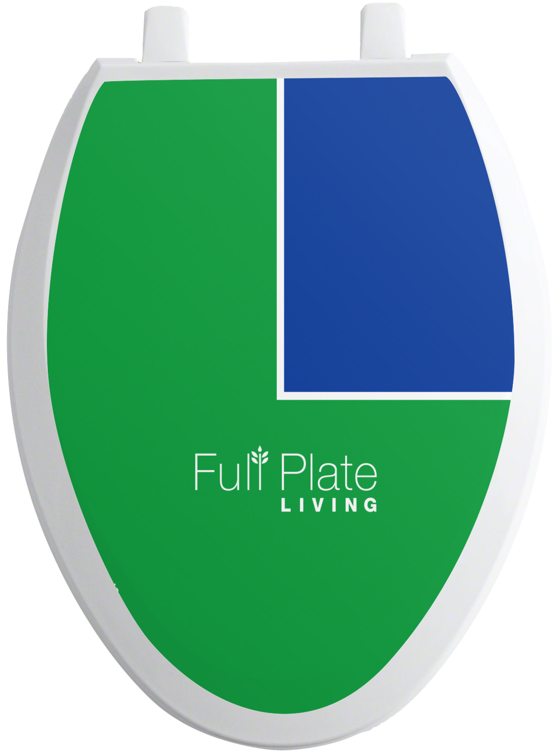 We sell these toilet lid decals in two different shapes to accommodate a wider range of toilet seat shapes. The first shape is our standard, round size, which measures at 13.5 by 12 inches. Our second option is an elongated shape, suited for long toilet seat covers. It measures 15 by 12 inches.