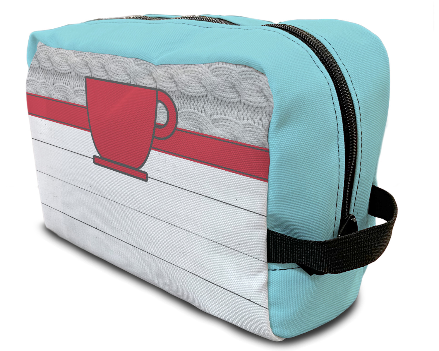 Our toiletry bag has the traditional dopp kit design i.e. a side to side zippered closure, giving you easy access to all the contents inside and a sturdy handle on one side of the bag. The canvas fabric for dopp kits is printed, then cut and sewn here in the USA.