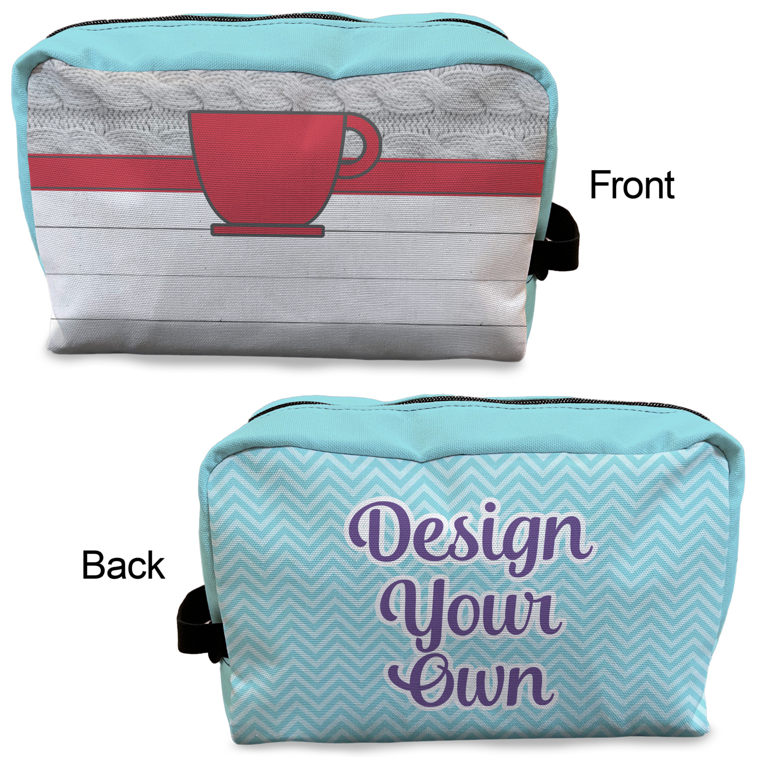 Designing a toiletry bag for yourself or as a gift can be a lot of fun. Our goal is for you to design a bag that reflects your personality and personal style. Our dopp kits are set up so you can design the front, the back and select a coordinating color for the zippered area.