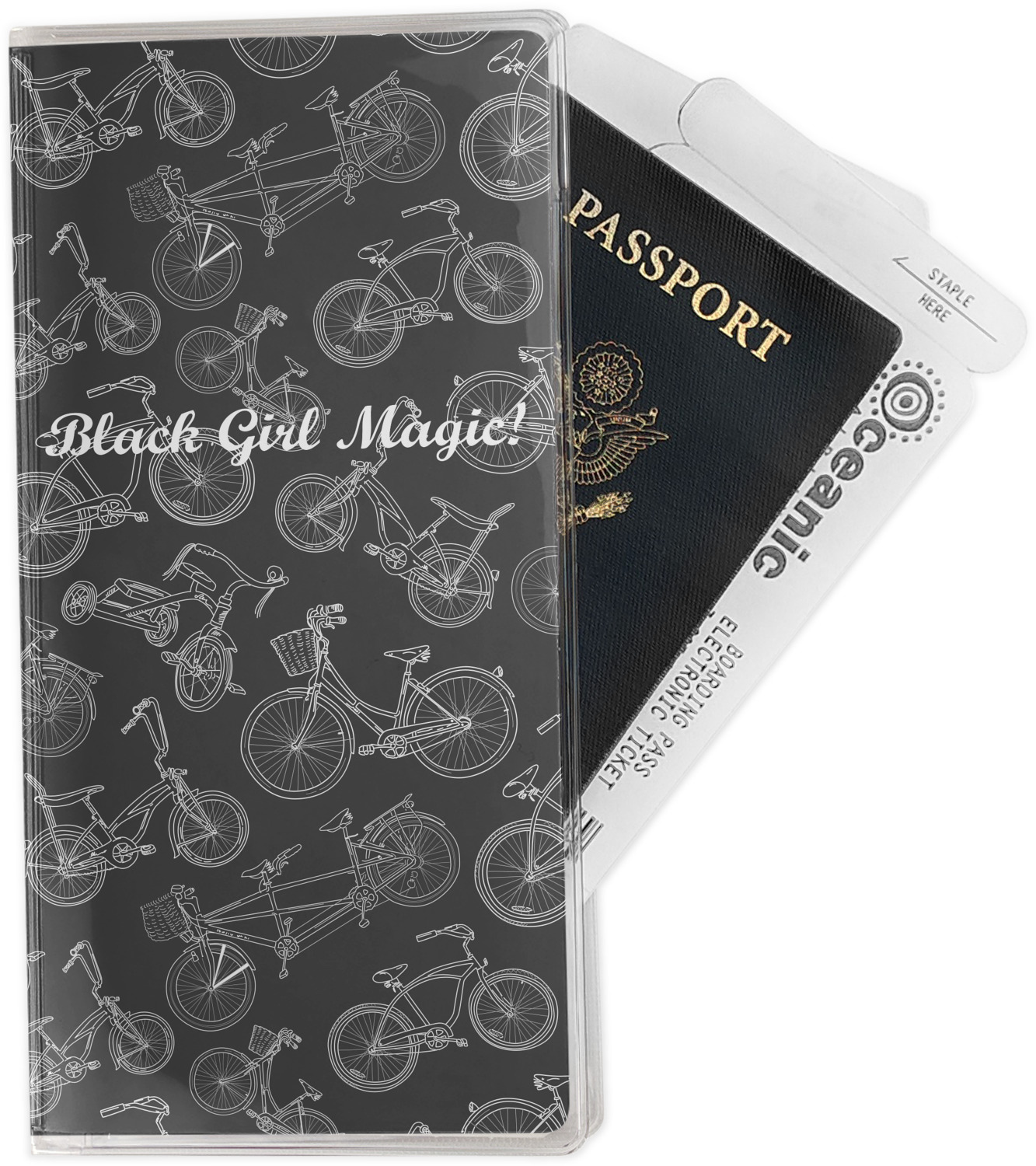 This document holder is really sturdy and has your personalized design inserted right behind all of your nifty pockets, so you can see it on the front and back covers. There are two large pockets and two shorter pockets inside. The larger pockets are tall enough to keep your boarding pass nice and straight. The smaller pockets (on top of the large pockets) are large enough to fit your passport, credit card, or ID.