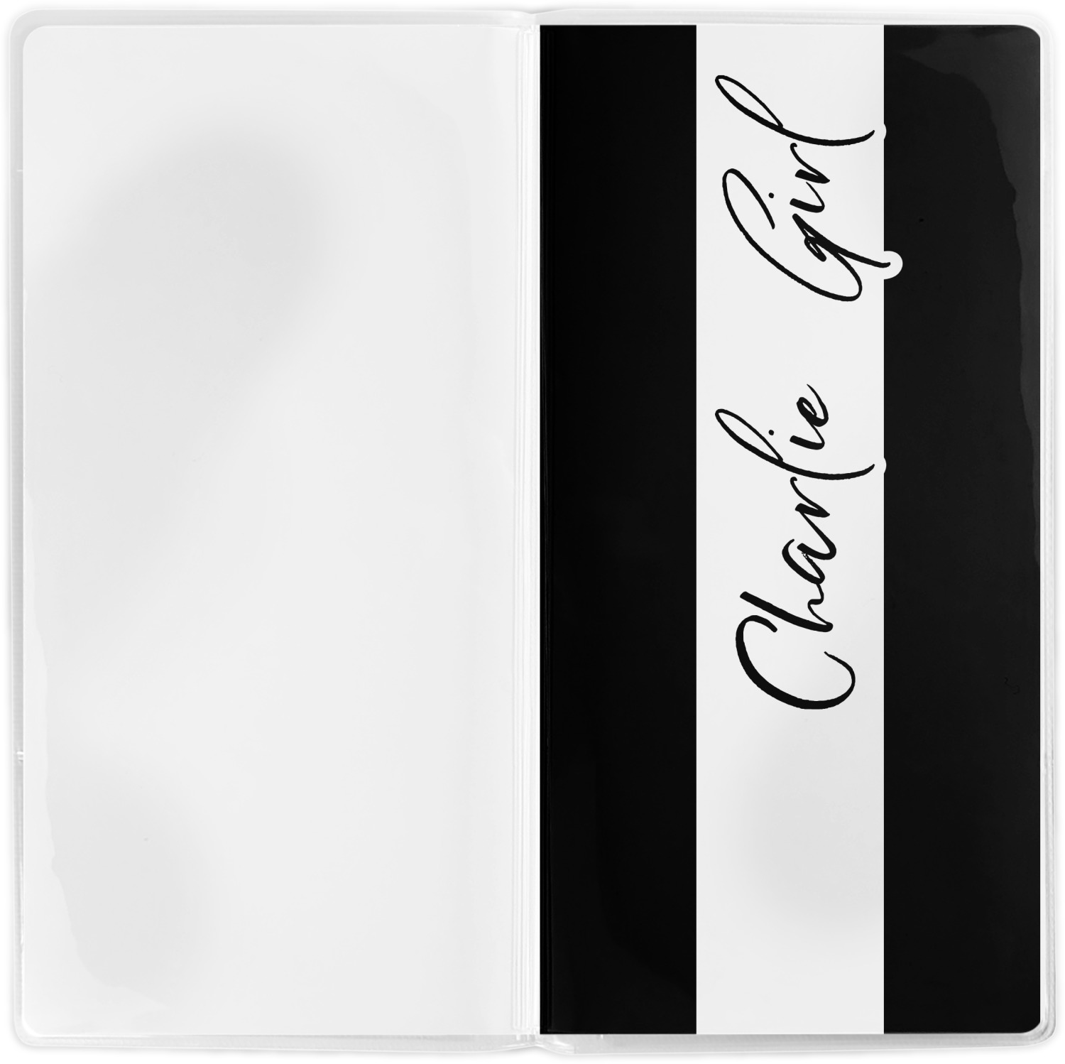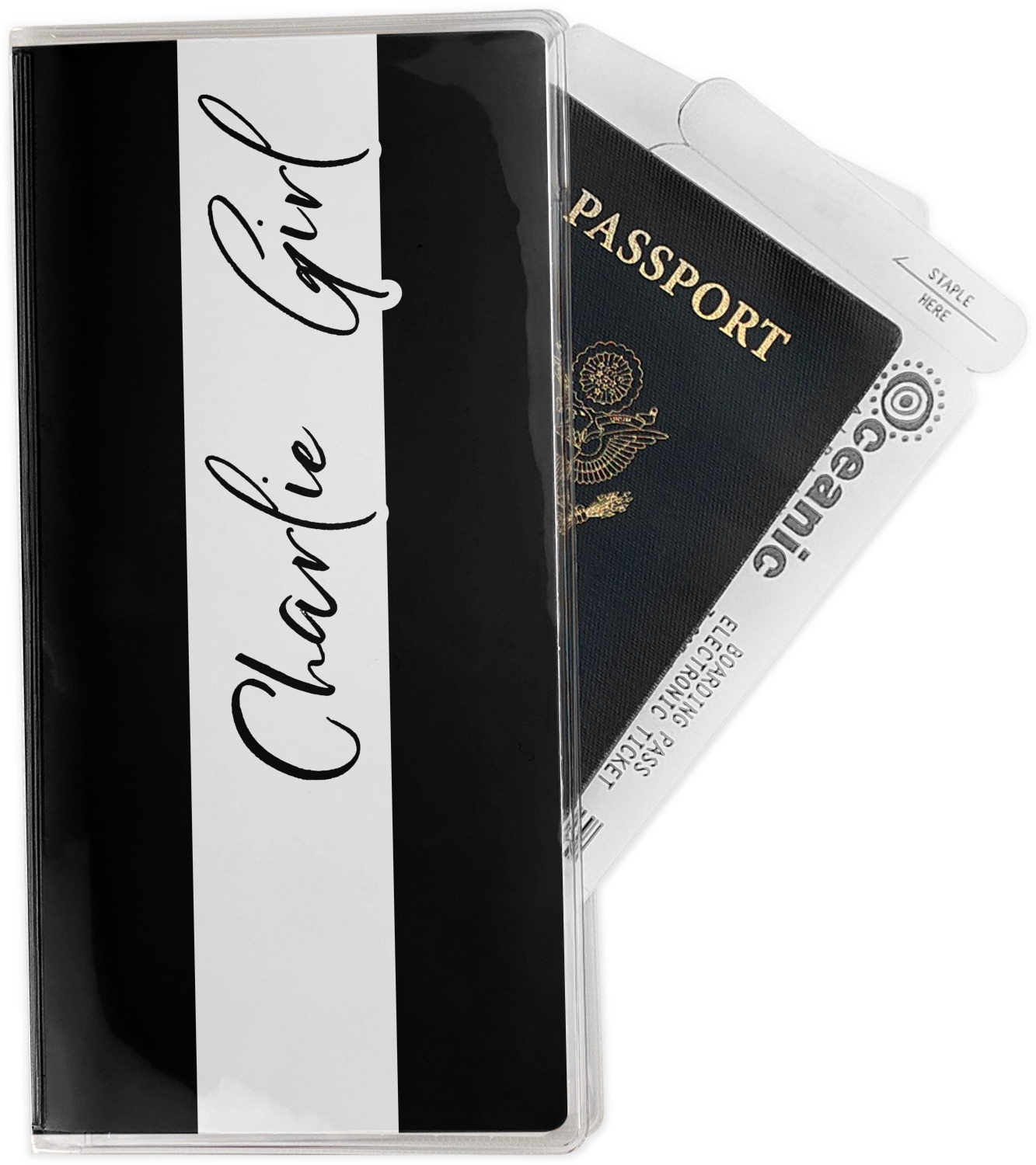 This document holder is really sturdy and has your personalized design inserted right behind all of your nifty pockets, so you can see it on the front and back covers. There are two large pockets and two shorter pockets inside. The larger pockets are tall enough to keep your boarding pass nice and straight. The smaller pockets (on top of the large pockets) are large enough to fit your passport, credit card, or ID.