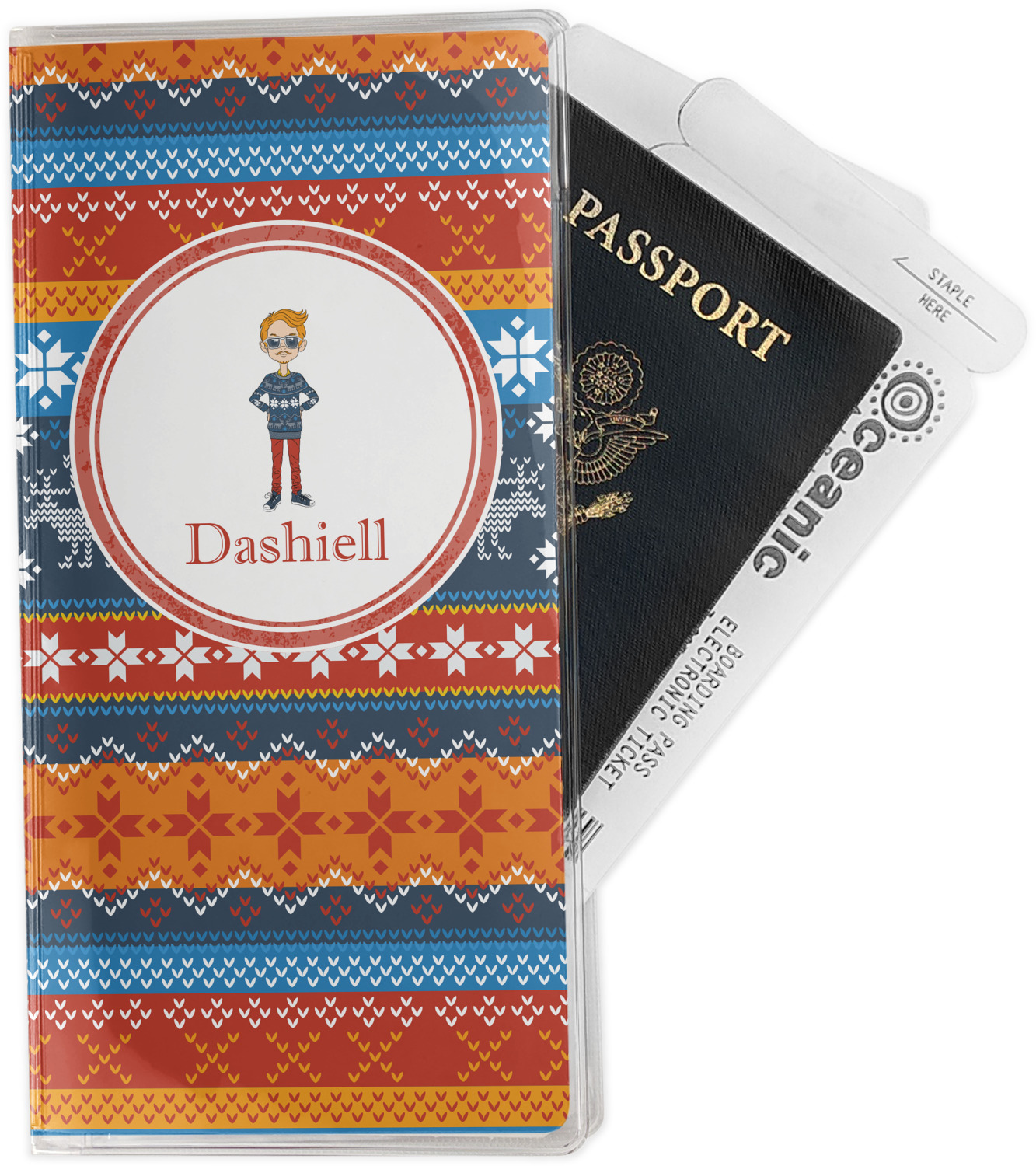 This document holder is really sturdy and has your personalized design inserted right behind all of your nifty pockets, so you can see it on the front and back covers. There are two large pockets and two shorter pockets inside. The larger pockets are tall enough to keep your boarding pass nice and straight. The smaller pockets (on top of the large pockets) are large enough to fit your passport, credit card, or ID.