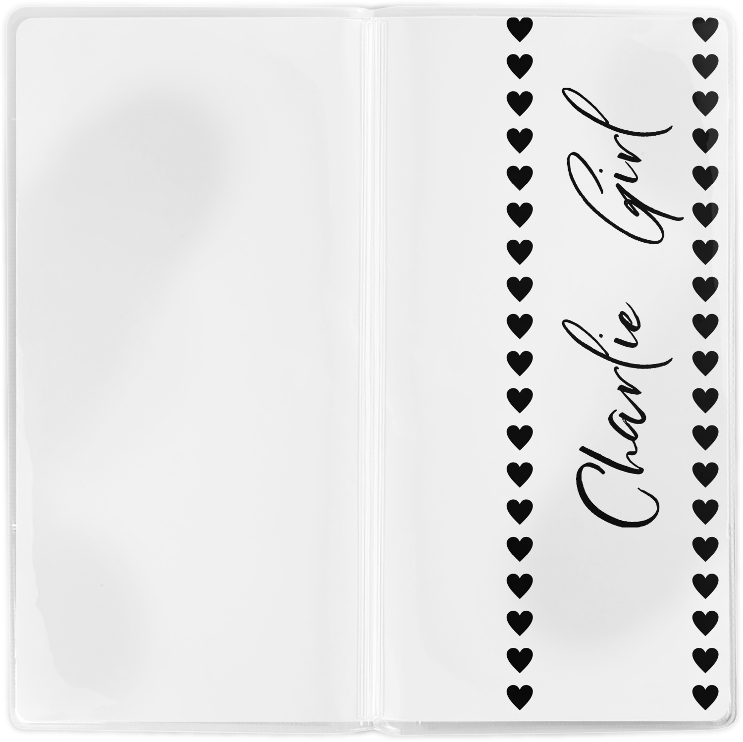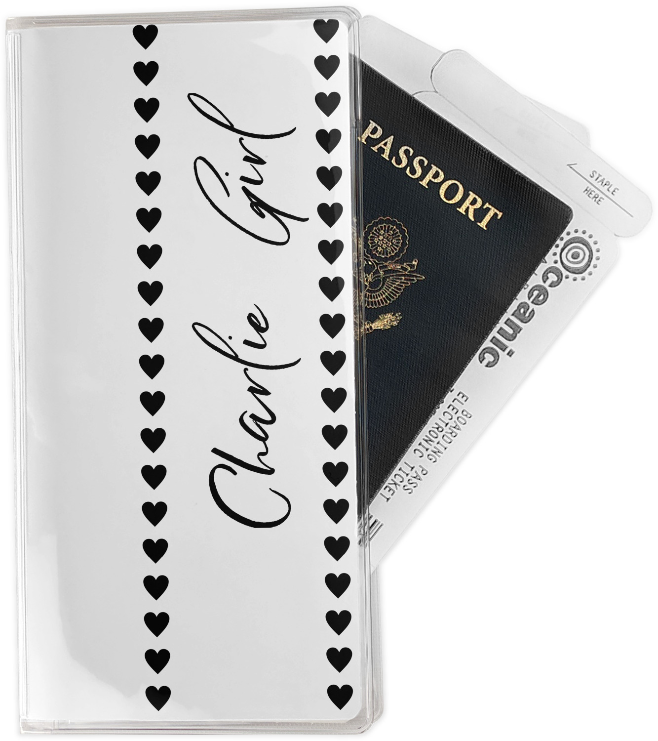 This document holder is really sturdy and has your personalized design inserted right behind all of your nifty pockets, so you can see it on the front and back covers. There are two large pockets and two shorter pockets inside. The larger pockets are tall enough to keep your boarding pass nice and straight. The smaller pockets (on top of the large pockets) are large enough to fit your passport, credit card, or ID.