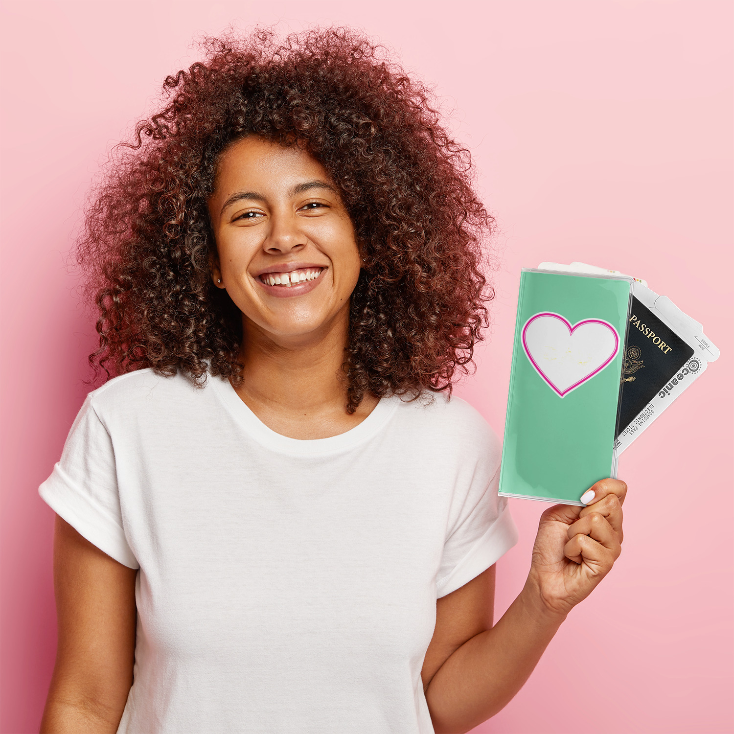 This document holder is really sturdy and has your personalized design inserted right behind all of your nifty pockets, so you can see it on the front and back covers. There are two large pockets and two shorter pockets inside. The larger pockets are tall enough to keep your boarding pass nice and straight. The smaller pockets (on top of the large pockets) are large enough to fit your passport, credit card, or ID.