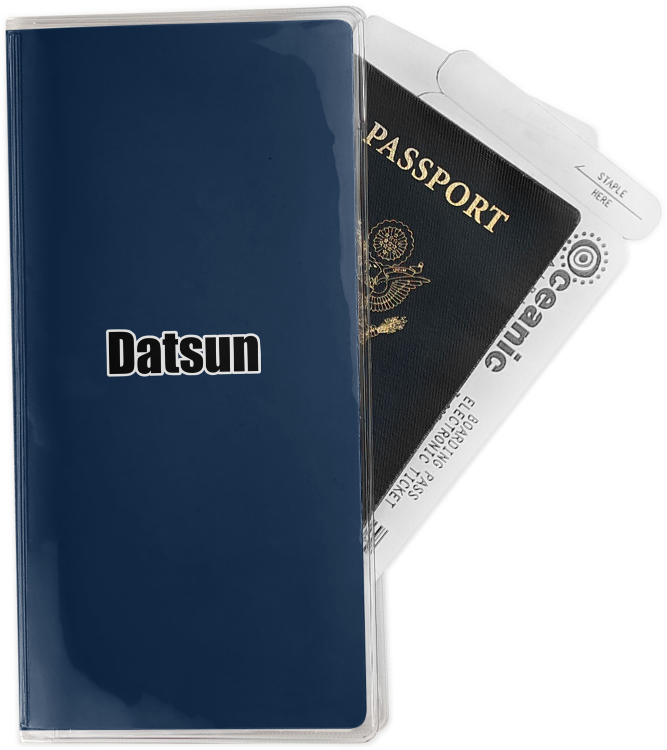 This document holder is really sturdy and has your personalized design inserted right behind all of your nifty pockets, so you can see it on the front and back covers. There are two large pockets and two shorter pockets inside. The larger pockets are tall enough to keep your boarding pass nice and straight. The smaller pockets (on top of the large pockets) are large enough to fit your passport, credit card, or ID.