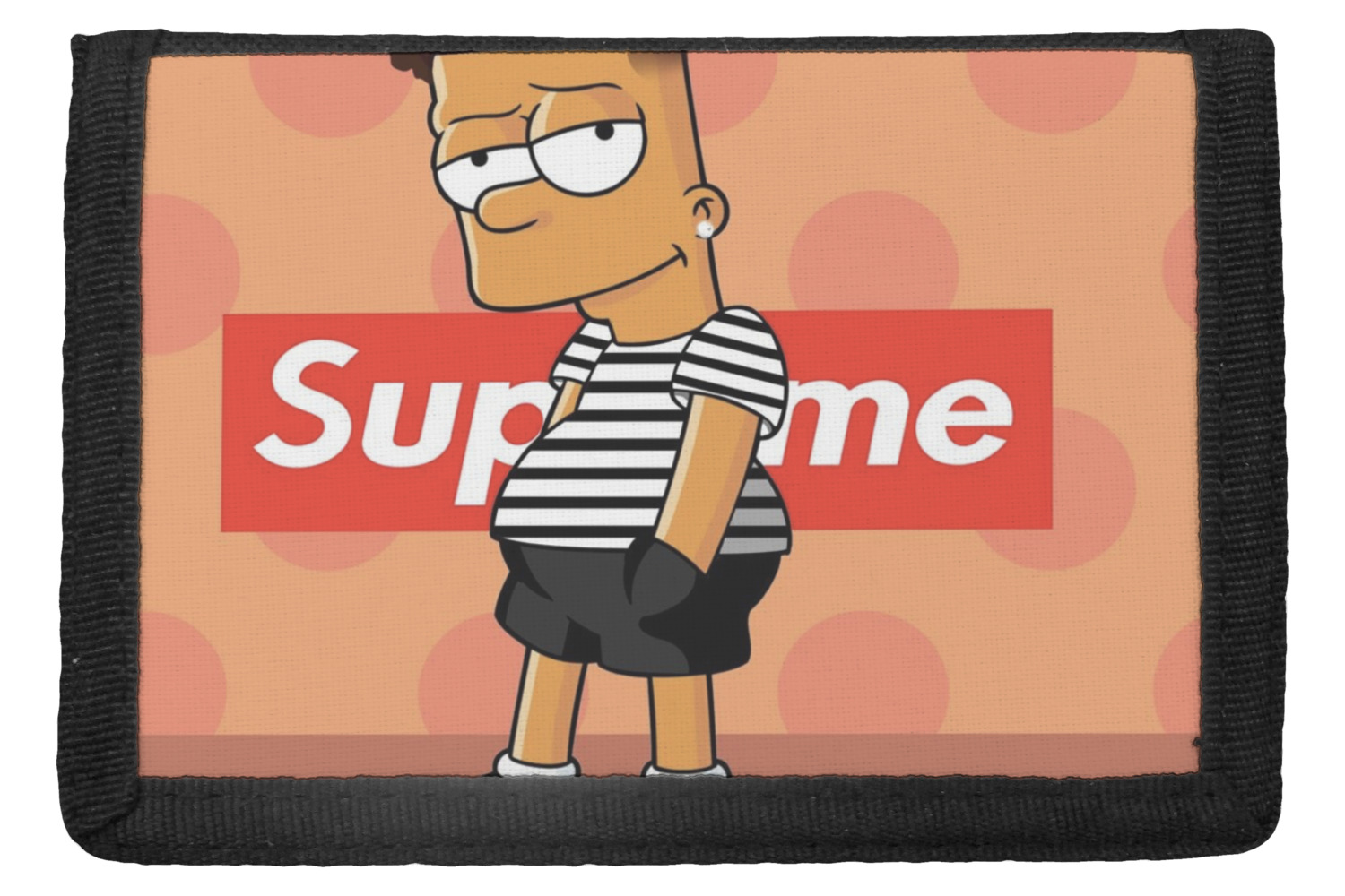 The wallets are black with the design printed on the front flap. You are able to create your design either horizontally OR vertically. They have 4 slots for IDs or credit cards and 1 large slot for cash. The wallet folds in thirds and is tightly secured by velcro. They are great starter wallets for kids or just as a good durable wallet for an adult.