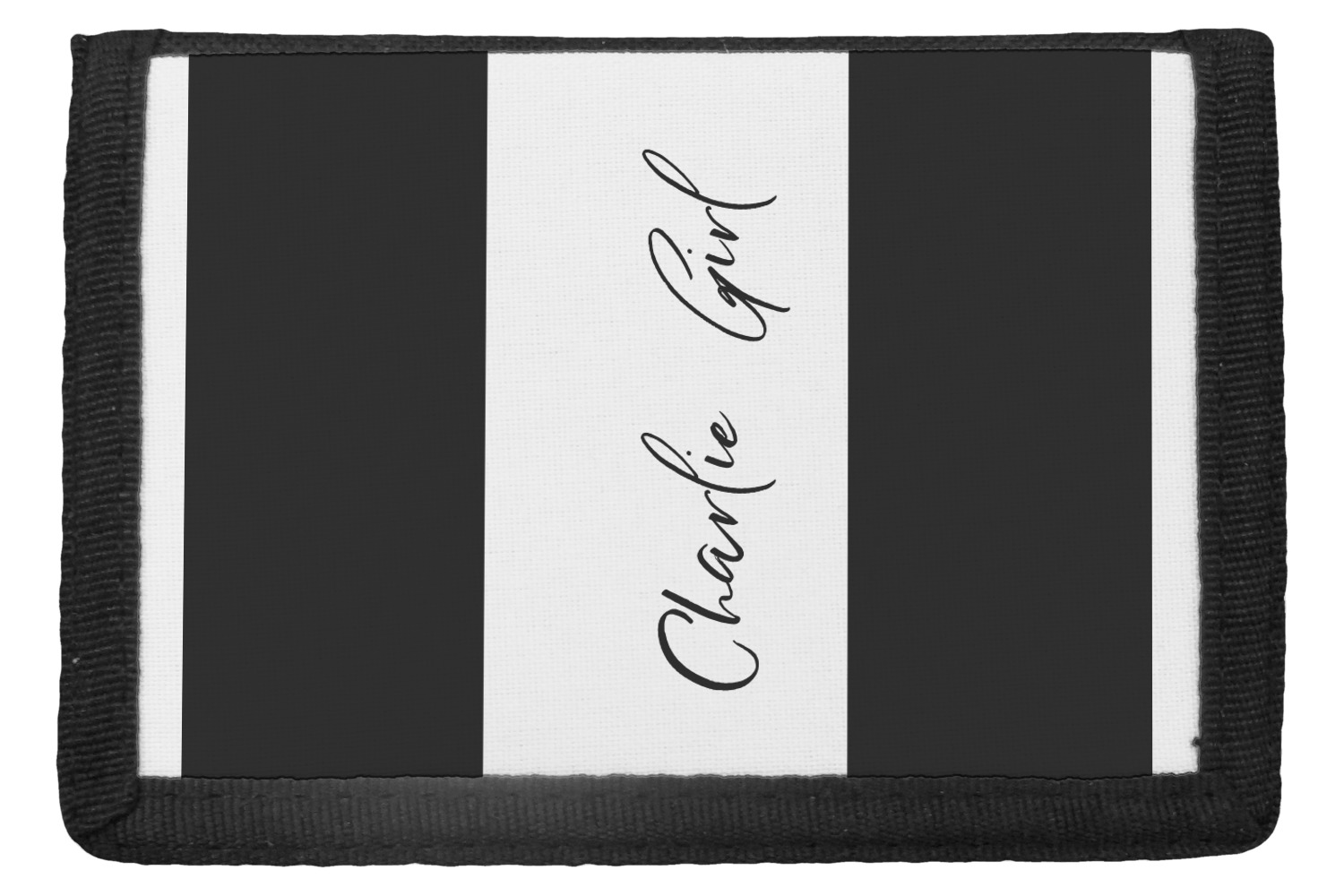 The wallets are black with the design printed on the front flap. You are able to create your design either horizontally OR vertically. They have 4 slots for IDs or credit cards and 1 large slot for cash. The wallet folds in thirds and is tightly secured by velcro. They are great starter wallets for kids or just as a good durable wallet for an adult.