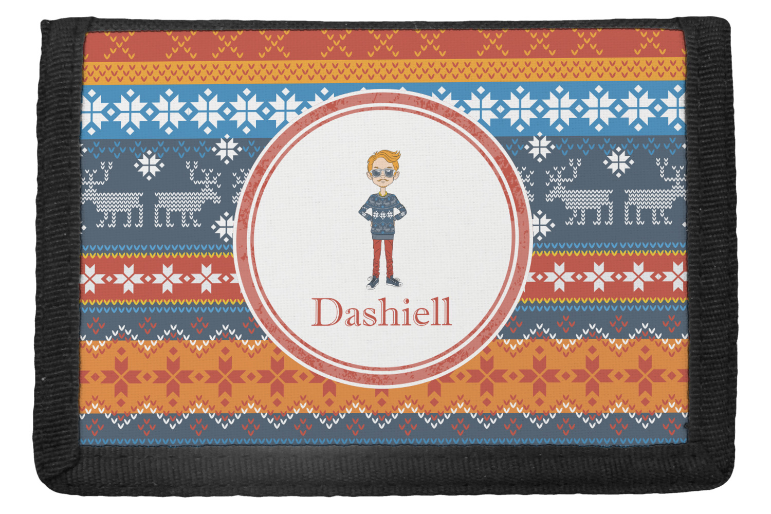 The wallets are black with the design printed on the front flap. You are able to create your design either horizontally OR vertically. They have 4 slots for IDs or credit cards and 1 large slot for cash. The wallet folds in thirds and is tightly secured by velcro. They are great starter wallets for kids or just as a good durable wallet for an adult.