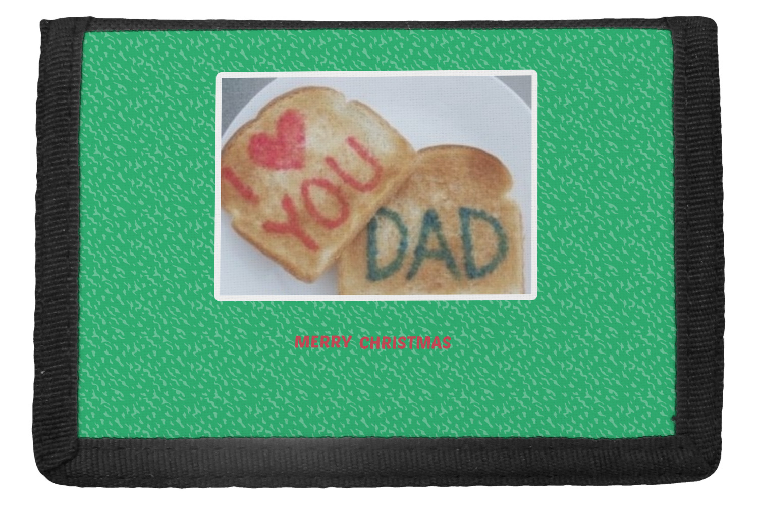 The wallets are black with the design printed on the front flap. You are able to create your design either horizontally OR vertically. They have 4 slots for IDs or credit cards and 1 large slot for cash. The wallet folds in thirds and is tightly secured by velcro. They are great starter wallets for kids or just as a good durable wallet for an adult.