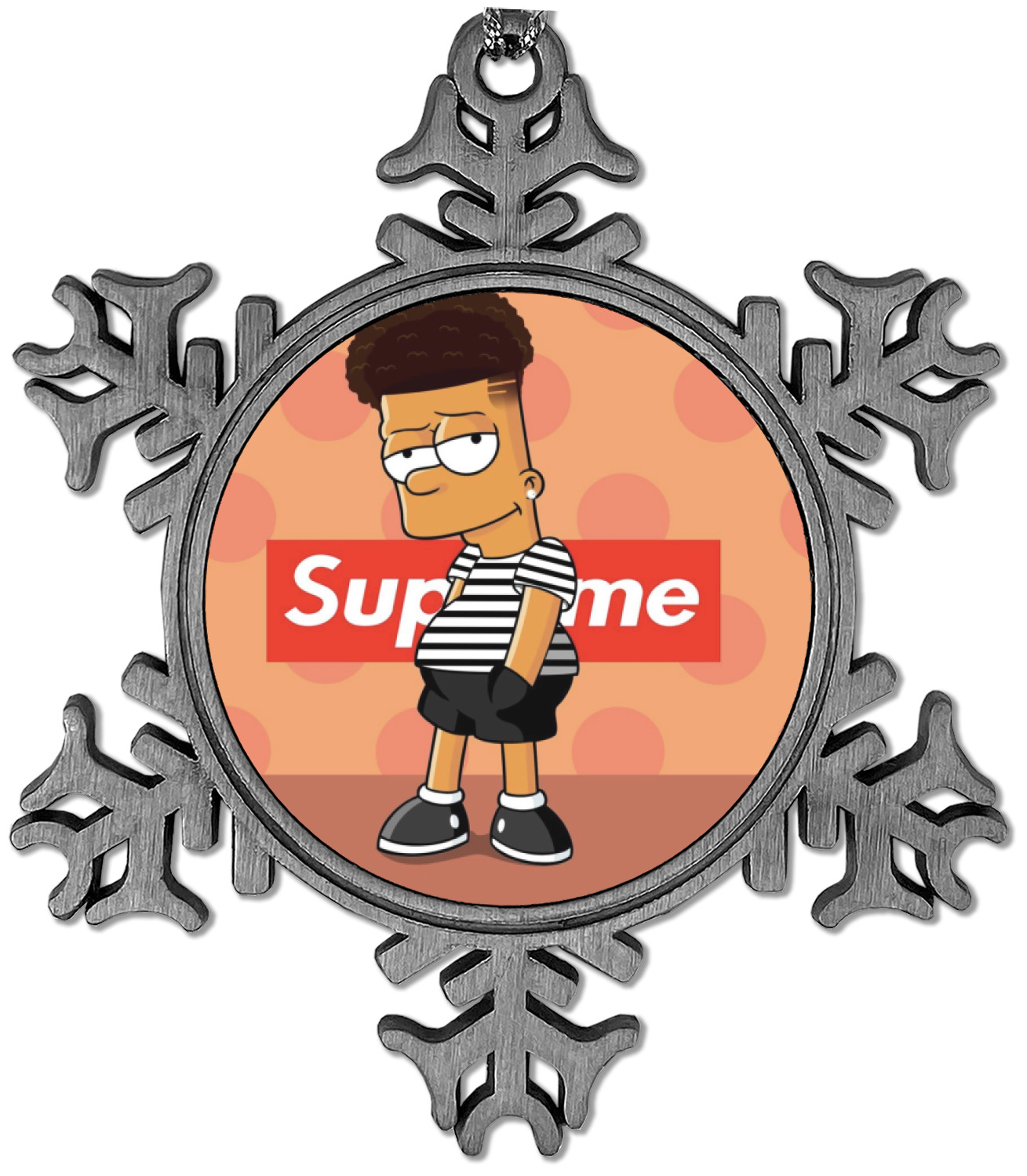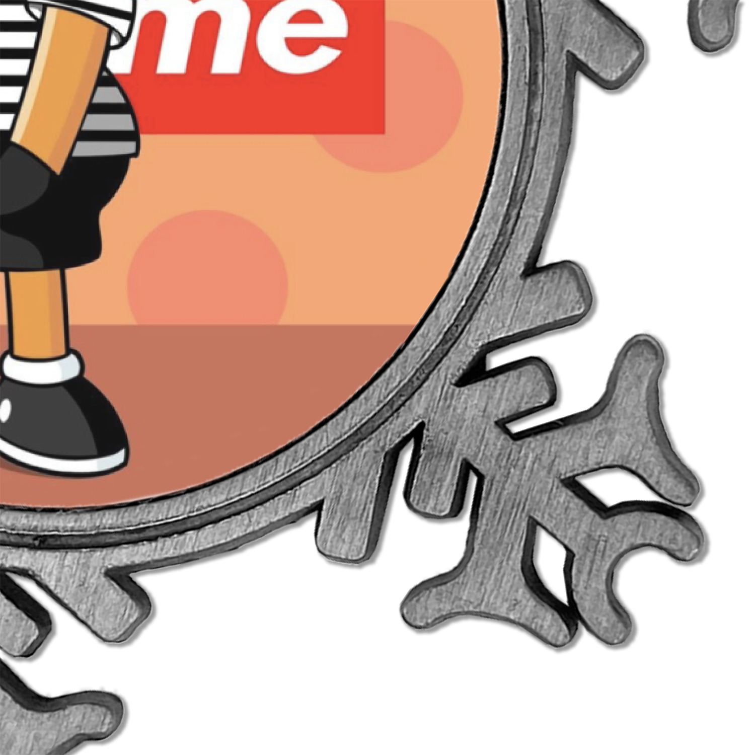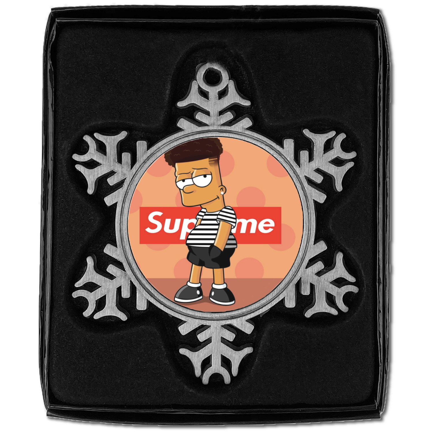 The snowflake shape ornament is an everlasting pewter material with a circular center to display your photo or design, giving it a unique vintage ornament look. Our personalized Christmas ornament comes in a small gift box for keepsake sure to preserve your picture ornament until the next holiday season. The snowflake shape is approximately 3 x 3 with a small silver accent string perfect for hanging. We print your photo or design in the center of the ornament with a size that is roughly 1.75 in diameter.