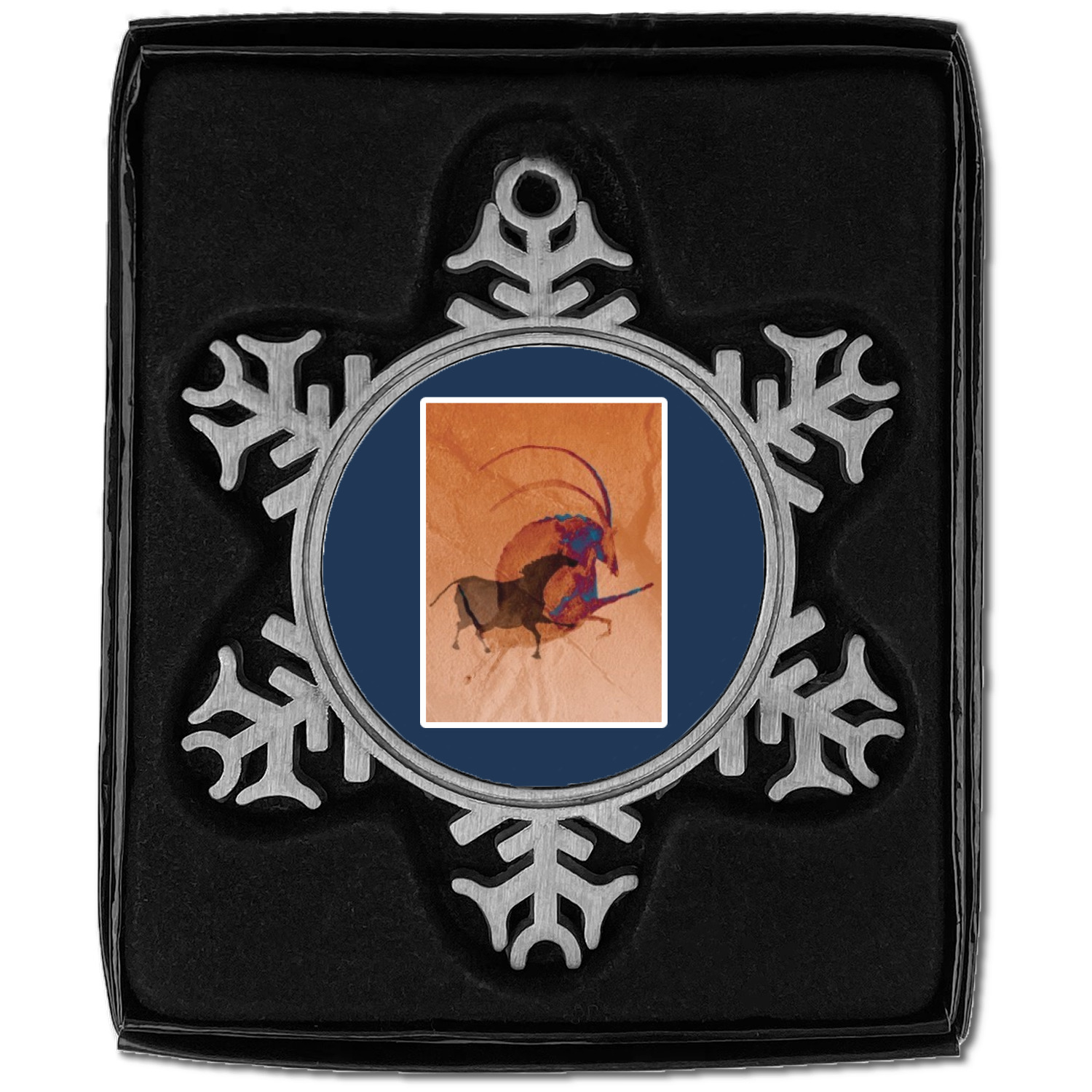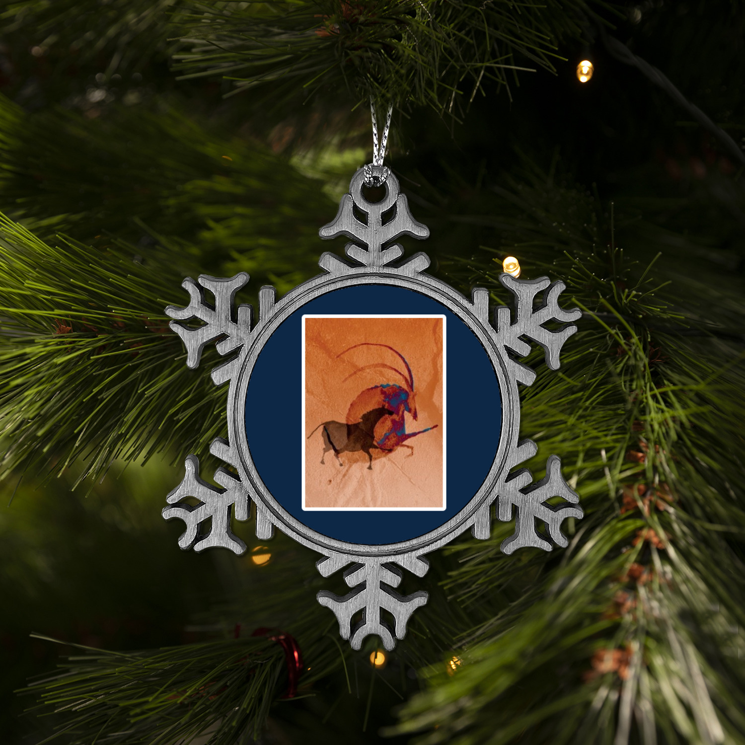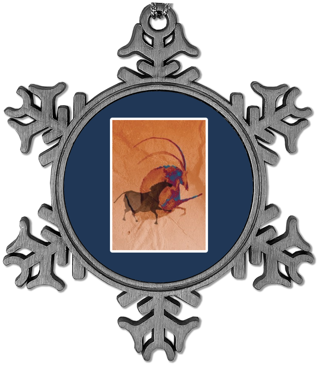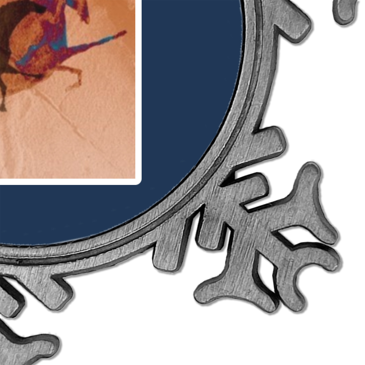 The snowflake shape ornament is an everlasting pewter material with a circular center to display your photo or design, giving it a unique vintage ornament look. Our personalized Christmas ornament comes in a small gift box for keepsake sure to preserve your picture ornament until the next holiday season. The snowflake shape is approximately 3 x 3 with a small silver accent string perfect for hanging. We print your photo or design in the center of the ornament with a size that is roughly 1.75 in diameter.