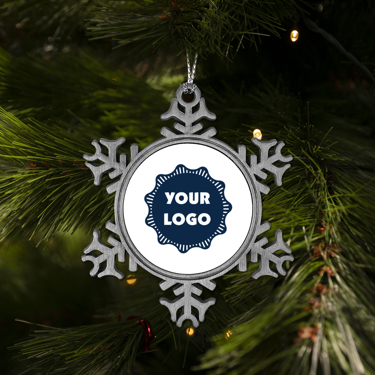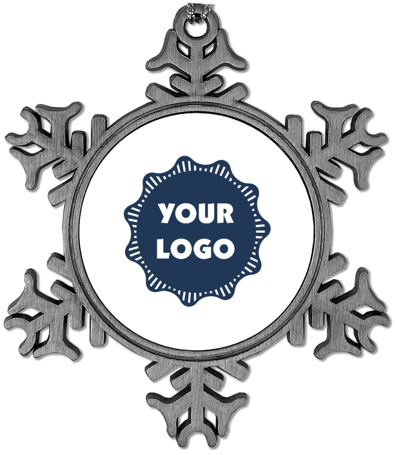 The snowflake shape ornament is an everlasting pewter material with a circular center to display your photo or design, giving it a unique vintage ornament look. Our personalized Christmas ornament comes in a small gift box for keepsake sure to preserve your picture ornament until the next holiday season. The snowflake shape is approximately 3 x 3 with a small silver accent string perfect for hanging. We print your photo or design in the center of the ornament with a size that is roughly 1.75 in diameter.