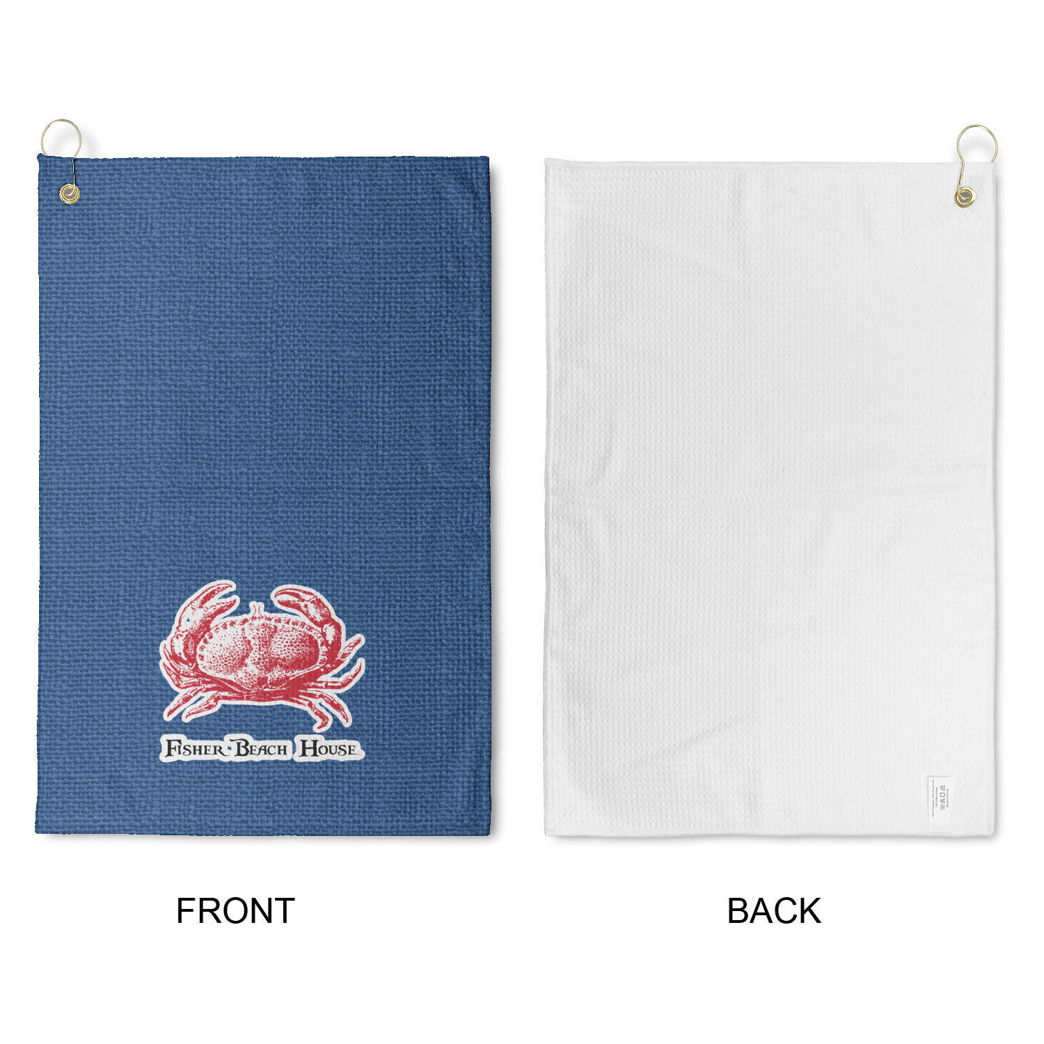 Personalize your design for your towel in our design studio then we will custom print and make it for you. The heavy duty brass grommet and hook are perfect for hanging anywhere you need it to. The waffle weave material is a durable microfiber material that will absorb up to 7 times its weight.